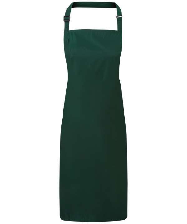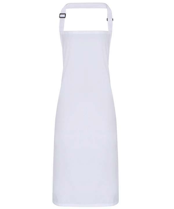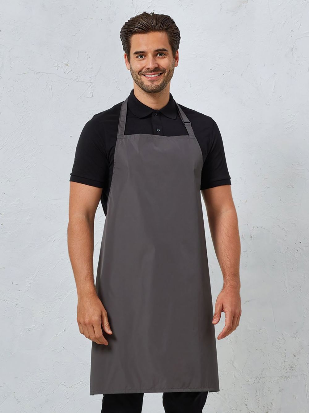 Waterproof and bleach resistant fabric, Self fabric neckband with plastic adjustable buckle, Self fabric 90cm ties, 100% polyester with polyurethane coating