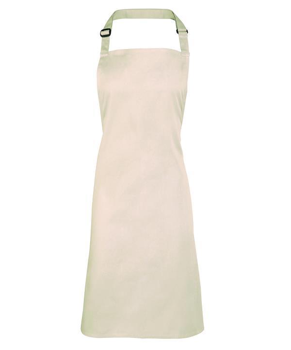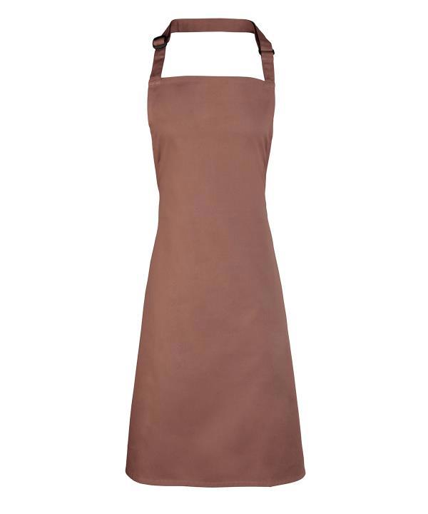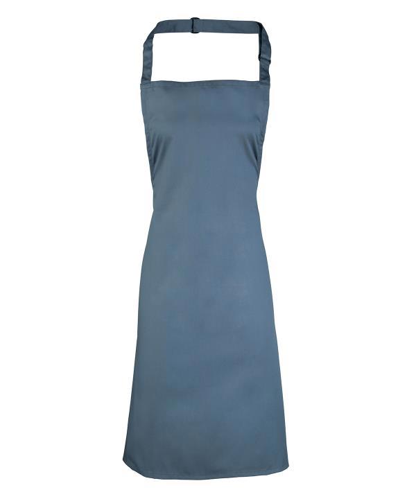 Classic premier bib apron available in 40 colours,Self fabric neck,Self fabric ties 90cm long,Width 72cm,Length 86cm