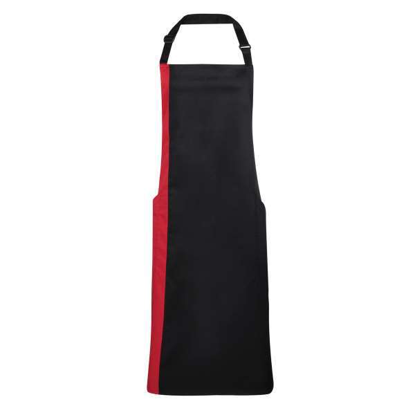Classic Premier bib apron with contrast coloured panel,Self fabric neck,Self fabric ties 90cm long,Width 72cm,Length 86cm