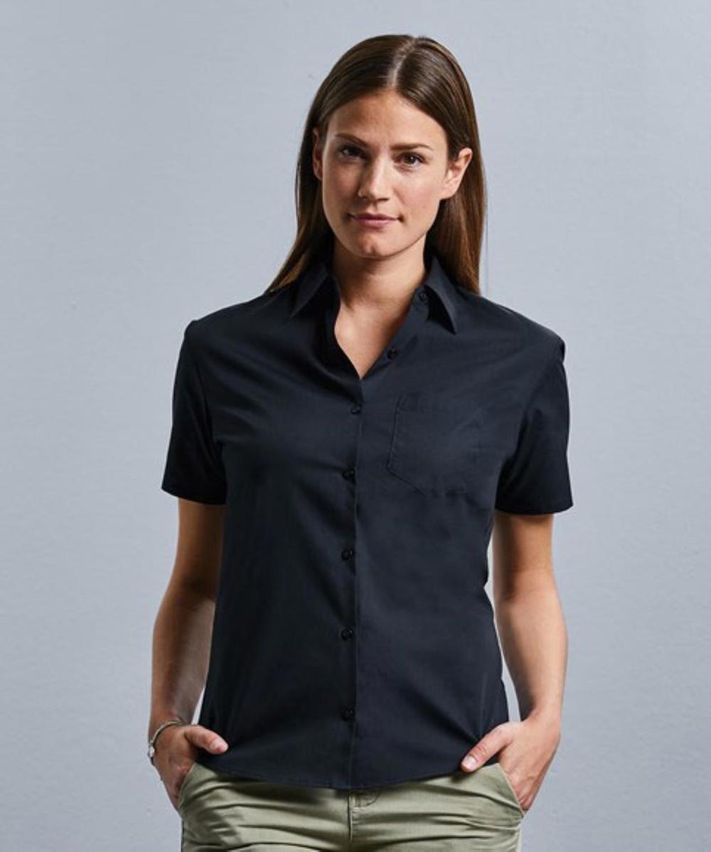 - Classic cut and a classic ladies' shirt design,Classic single button collar,V-shaped pocket over left chest,Rounded hem Spare buttons easy care,