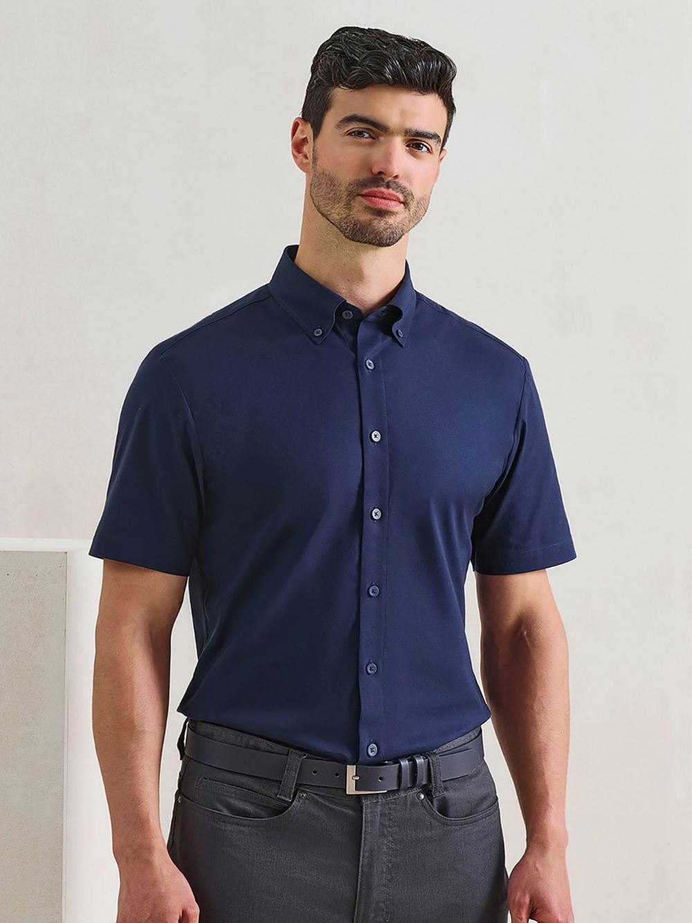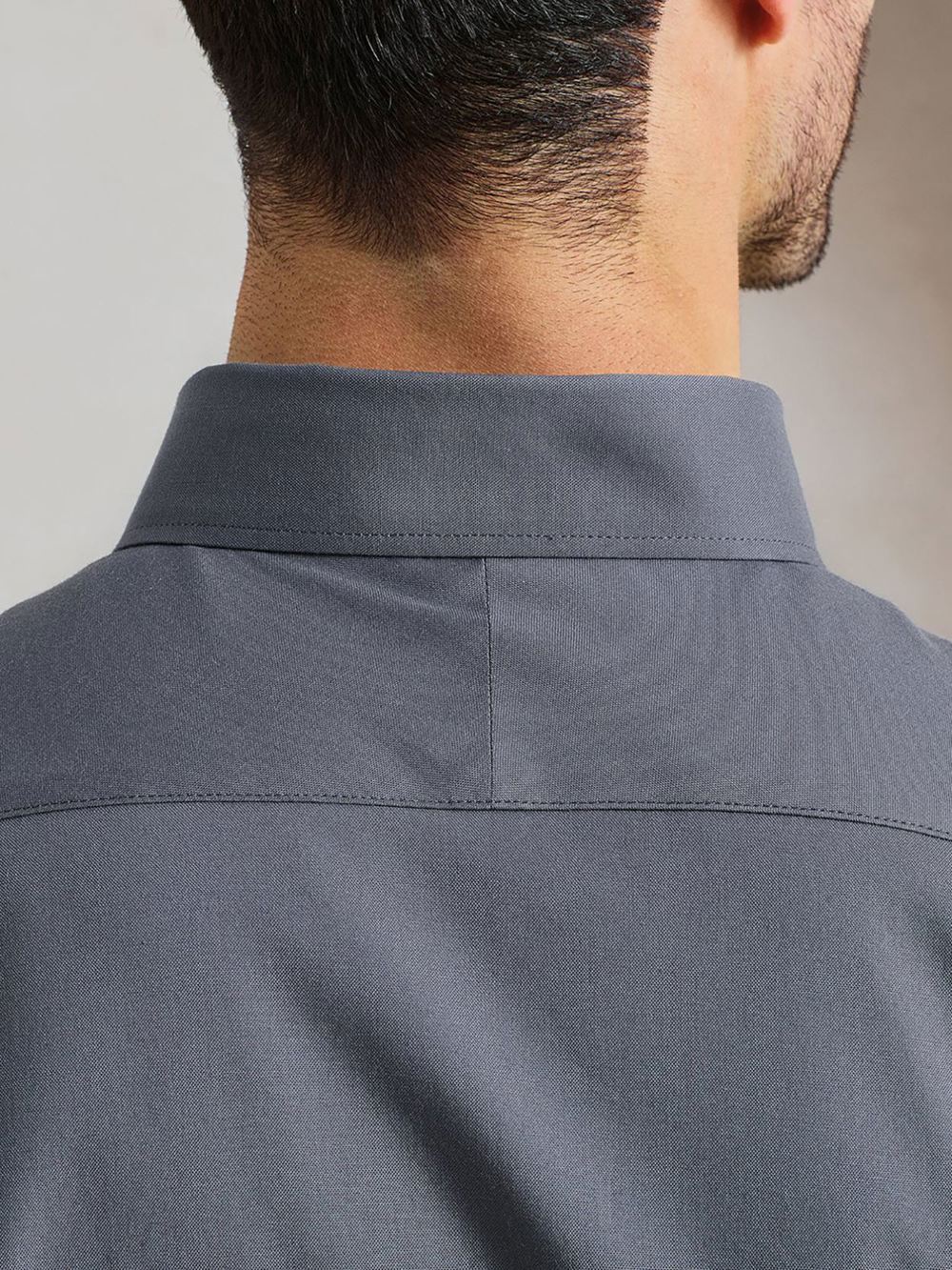 Mercerised cotton, Button down collar, Soft feel stretch fabric, Back yoke and pleats, Curved hem