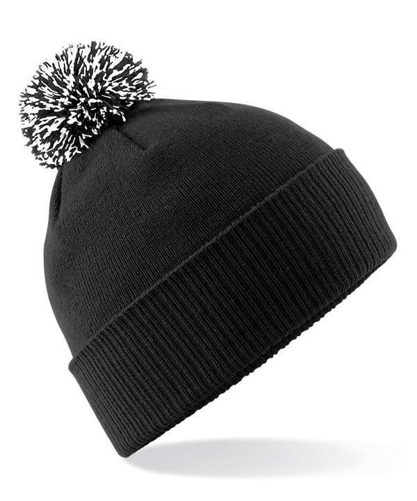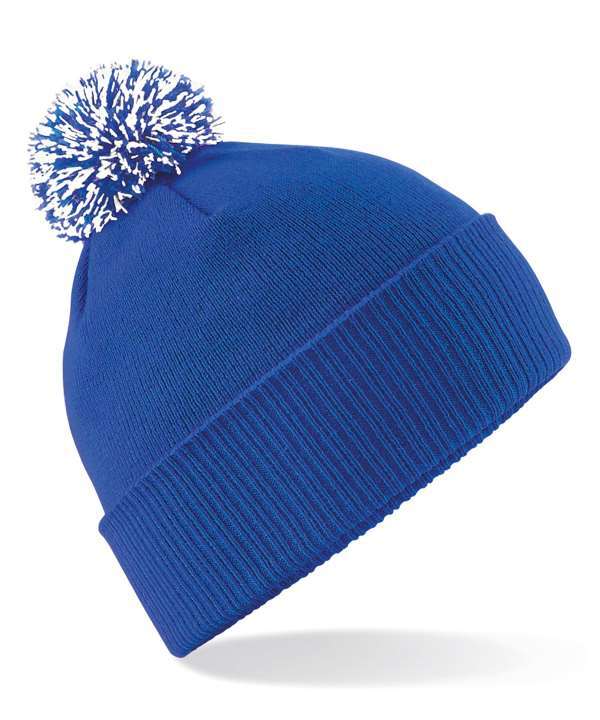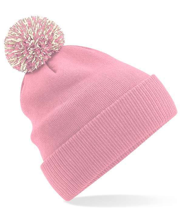 Dual style - cuffed or slouch, Two-tone pom pom, 100% soft-touch acrylic, Ribbed cuff, Also available in junior size - search for B450B