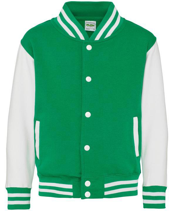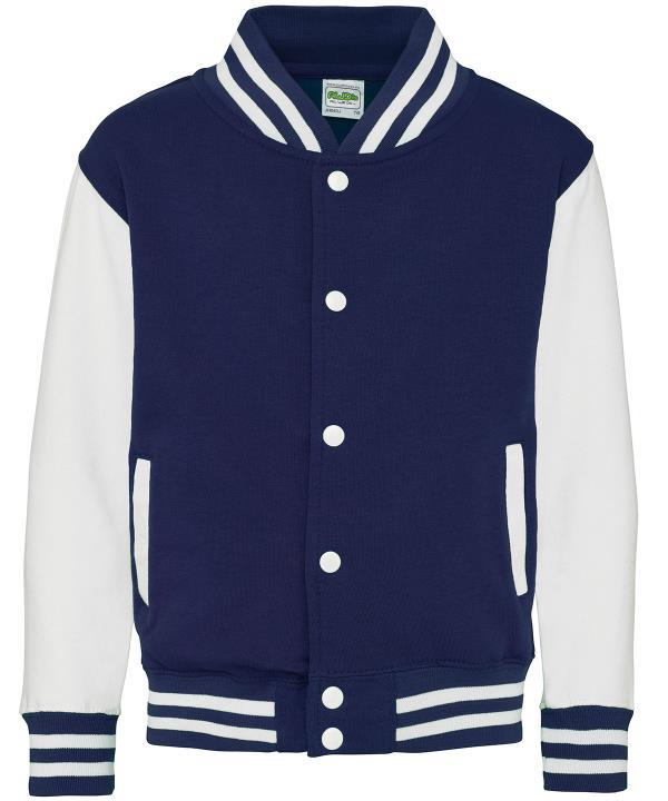 This kids varsity jacket is made in a sporty American style. It features a classic fit with contrast sleeves with excellent front popper fastening.
