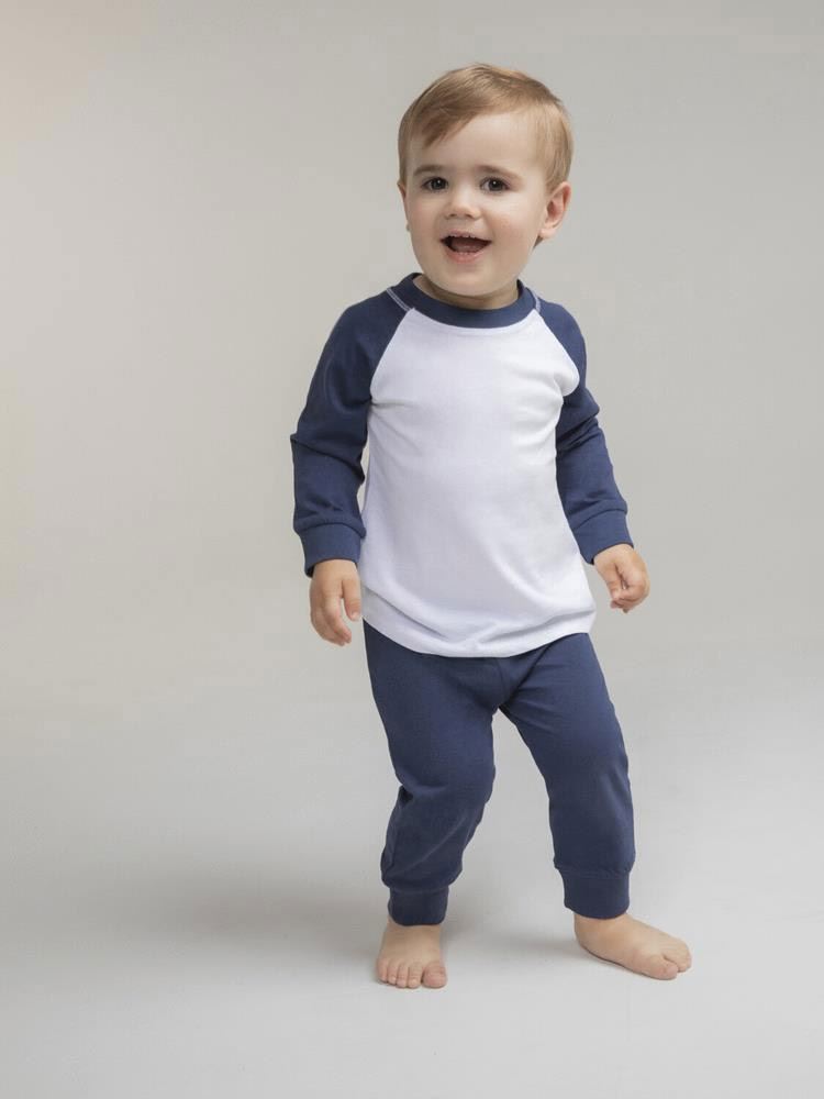 Baseball style shirt Contrast sleeves and neck band Elasticated waist Ribbed cuffs Twin needle stitching Size tab only KEEP AWAY FROM FIRE