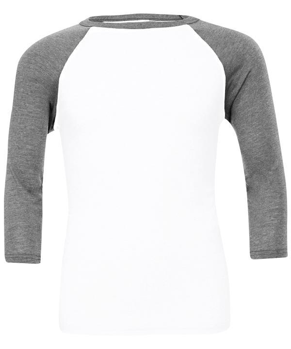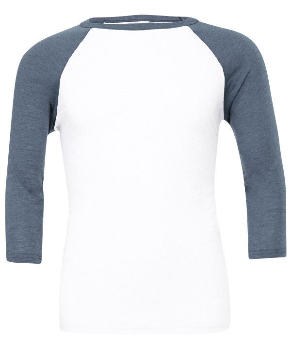 Side seamed, Retail fit, Unisex sizing, Contrast raglan sleeves and neck trim, 52% airlume combed ringspun cotton/48% polyester, Cols 122 gsm, Tri-blend 130 gsm