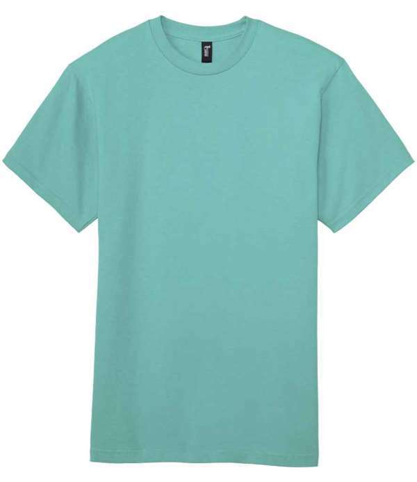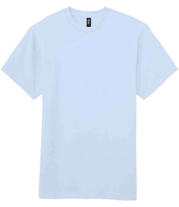 Seamless ribbed collar., Taped neck and shoulders., Tear out label., Tubular body., Twin needle sleeves and hem.