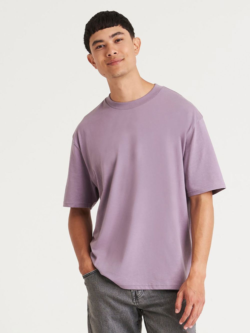 Oversized fit., Taped neck., Ribbed crew neck., 100% combed ringspun cotton., Unbranded size label at neckline., 190 gsm, Garment length and half chest size have a tolerance of +/- 2cm, Sleeve length has a tolerance of +/- 1cm