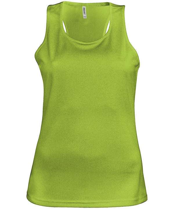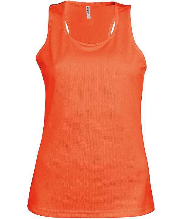 Racer back style,Quick drying lightweight fabric,Twin needle finishing,Self fabric bound neck and armholes,Was KS031, Garment measurements shave a tolerance of +/- 2cm
