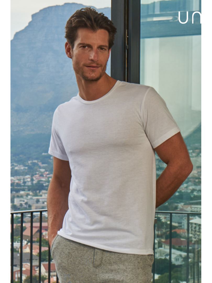 100% Cotton, Fabric Weight: 150 grams per square metre, Crew Neck, Reactive Dyed, Tubular Construction, Taped Neck, Twin Needle Stitching at Sleeve and Bottom Hem