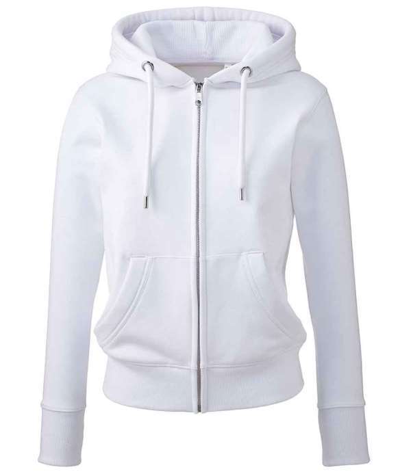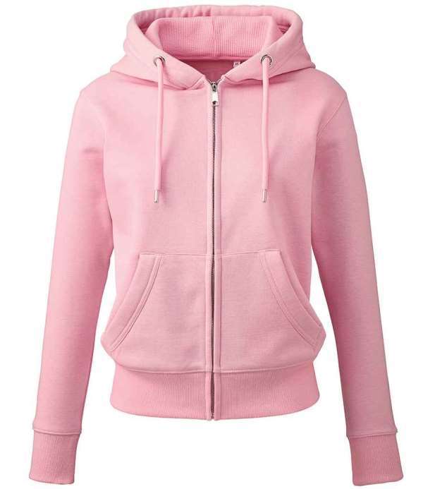 Ladies Stylish Drop Shoulder Organic Zip Hoodie in five colour options.