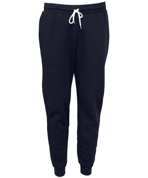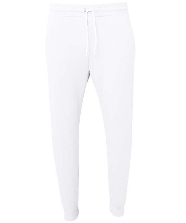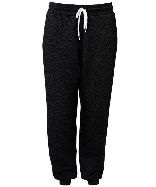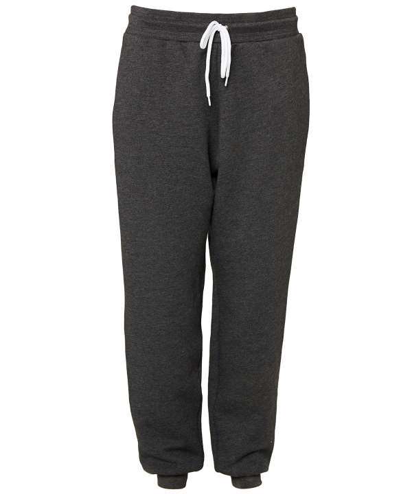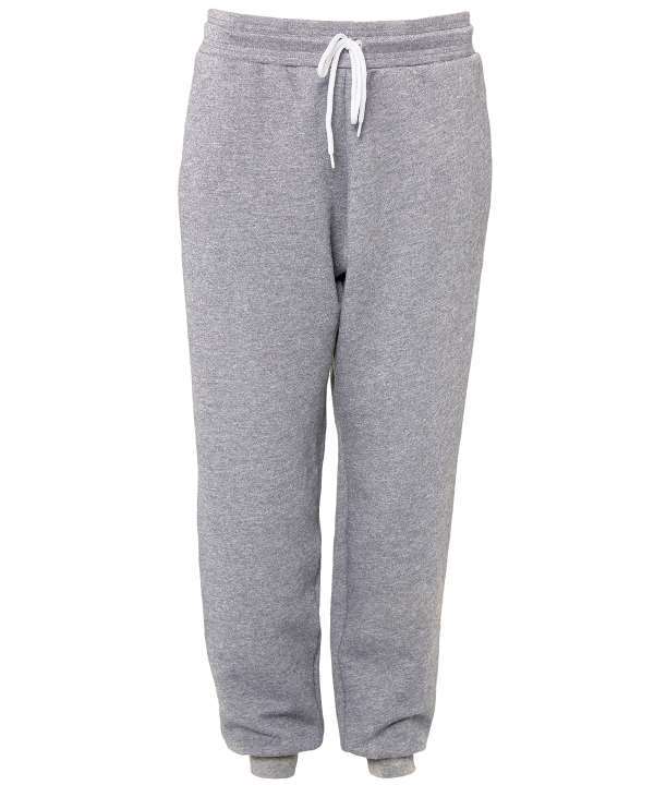 Brushed back fleece, Two side pockets, Elasticated waistband with white drawcord, Ribbed cuffed leg ends, Tear out label