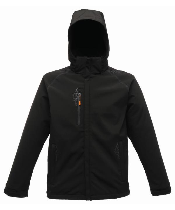 Warm backed soft shell fabric has a 96% polyester/4% elastane outer., Polyester mesh body lining, Outer layer made from at least 50% recycled polyester, Lightweight