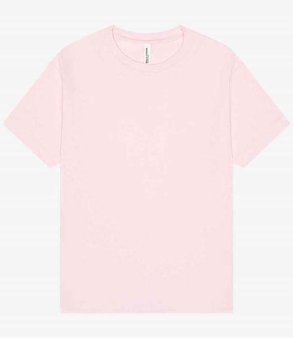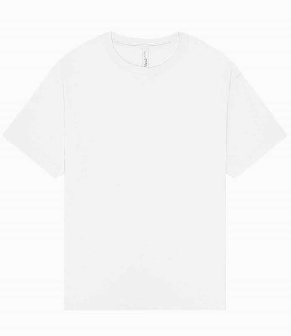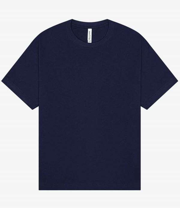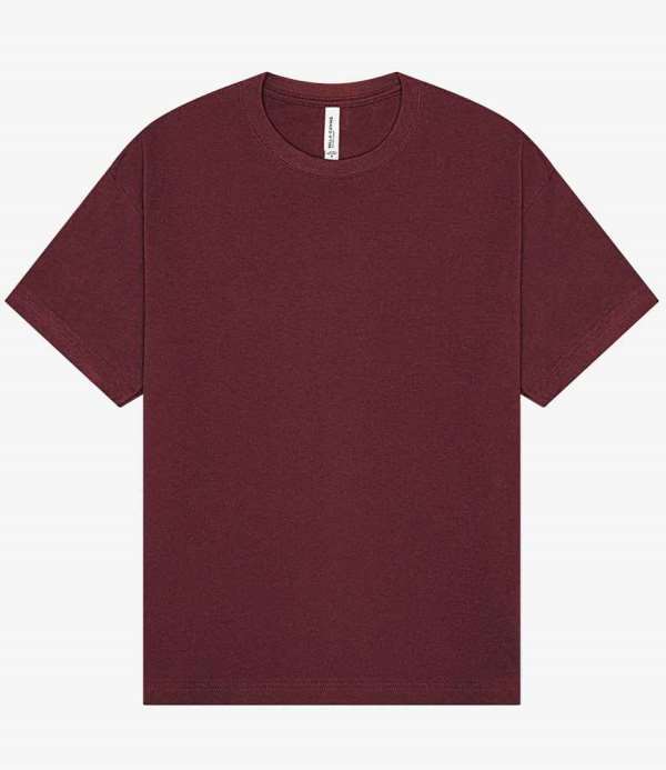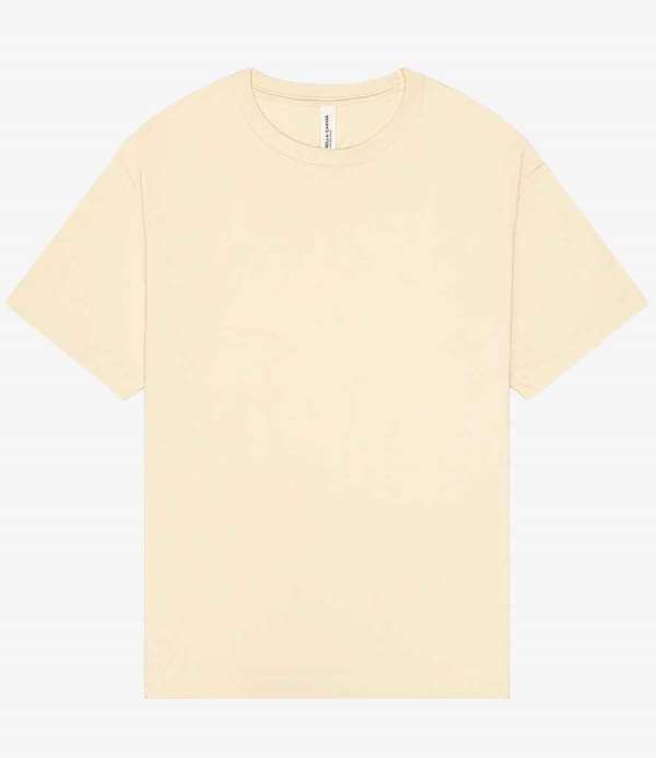 Relaxed, boxy fit, Ribbed collar, Taped neck, Side seams, Twin needle sleeves and hem, Tear out label
