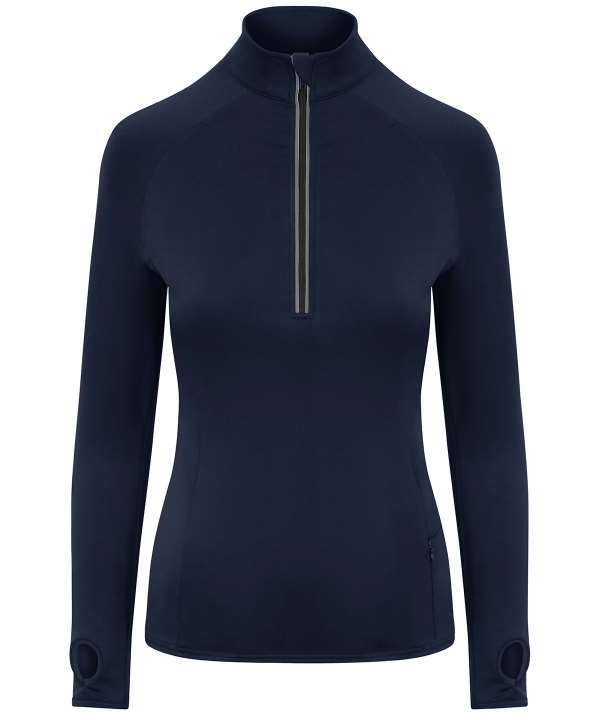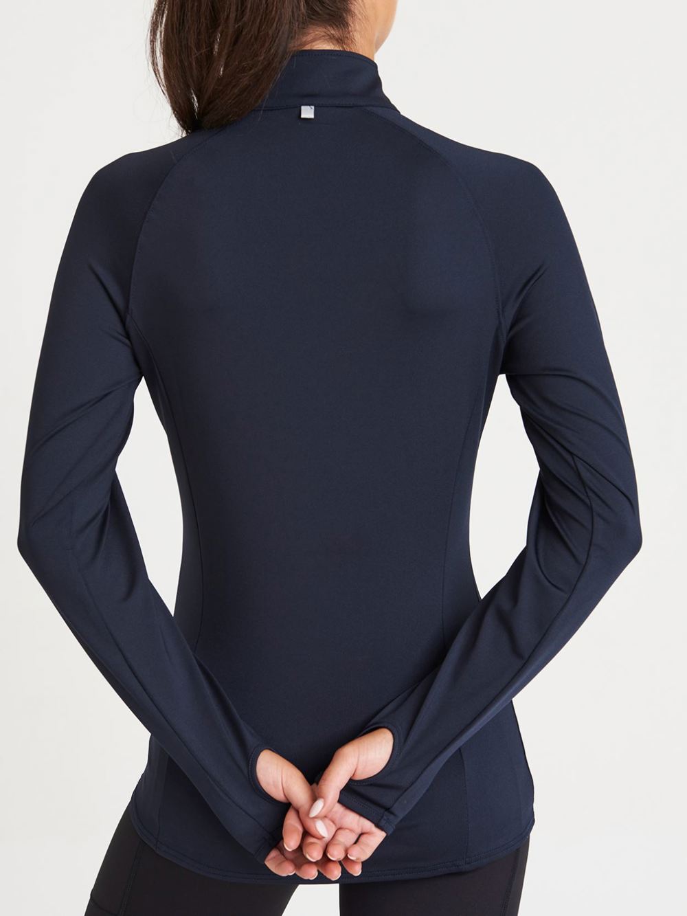 Cool-Flex™ four-way stretch fabric with quick dry, wicking properties., Stand up collar, Active fit, Reflective tab on back neck, Raglan sleeves, Zip neck with chin guard and reflective detail, Bound cuffs with thumbholes, Side panels, Garment measurements have a tolerance of +/- 2cm