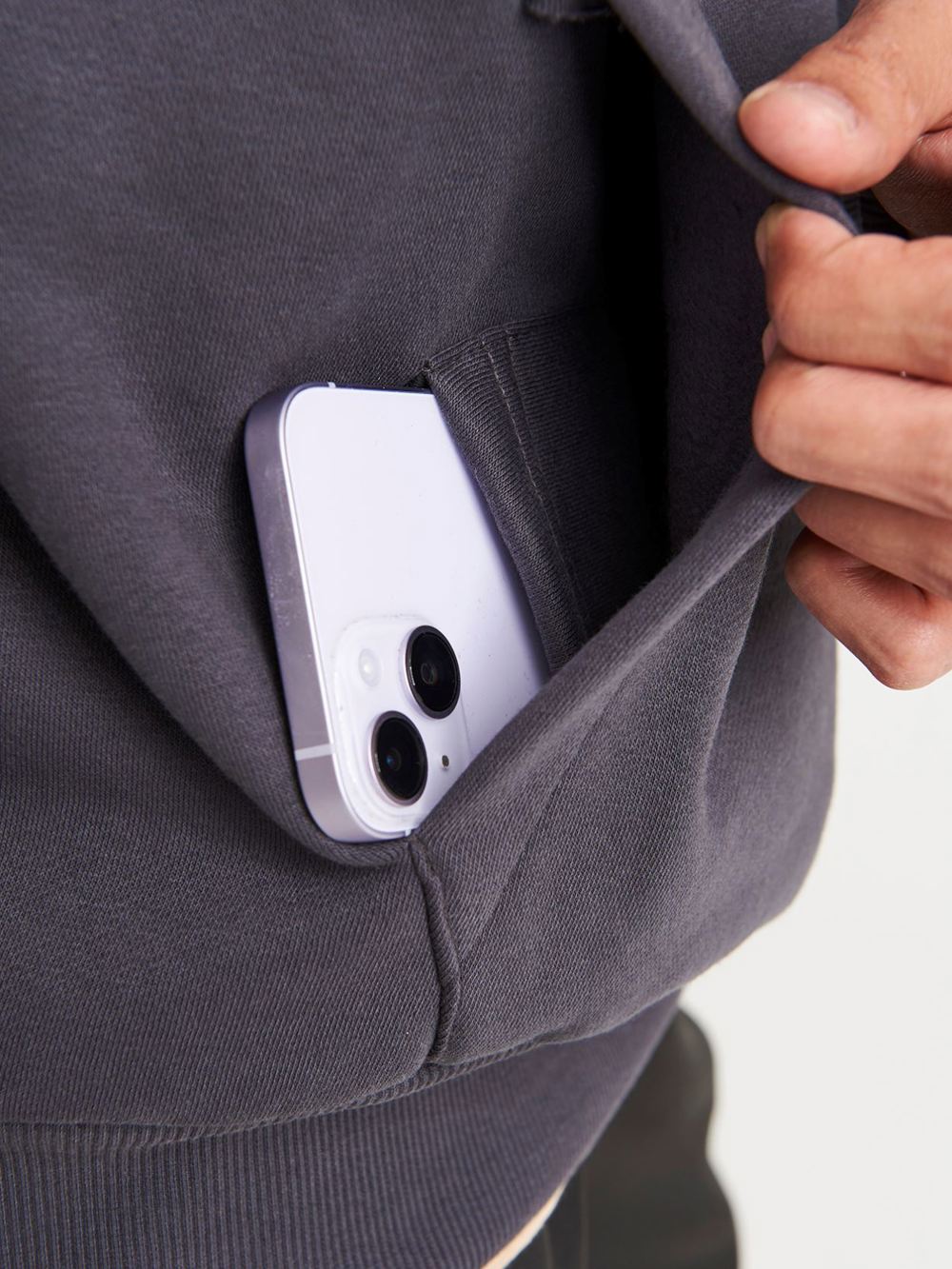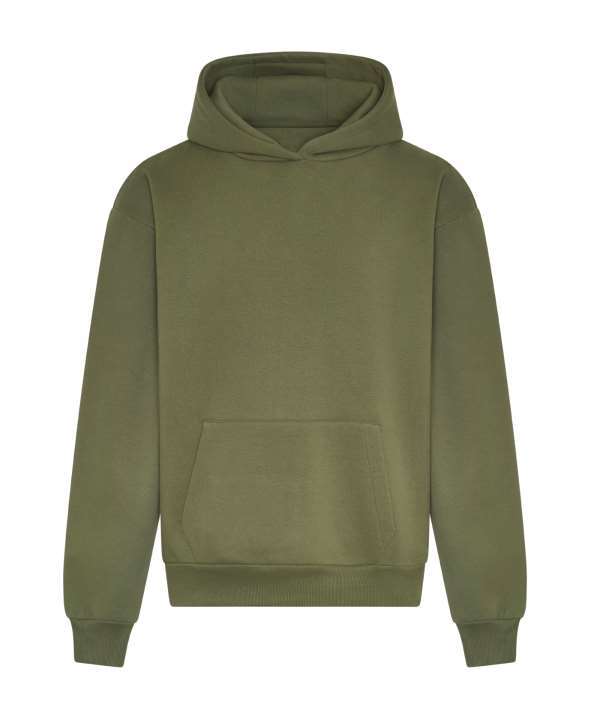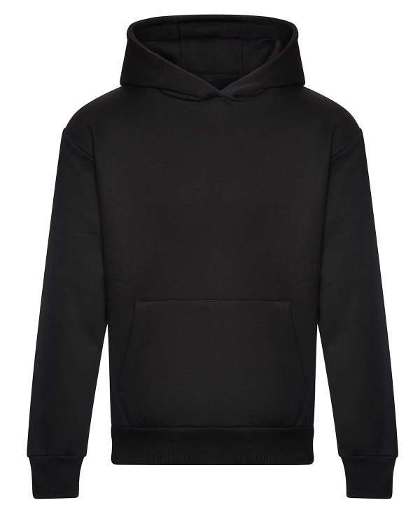 Cotton faced fabric., Drop shoulder style., Brushed back fleece, Oversized fit., Front pouch pocket with inner media pocket., Garment measurements have a tolerance of +/- 2cm