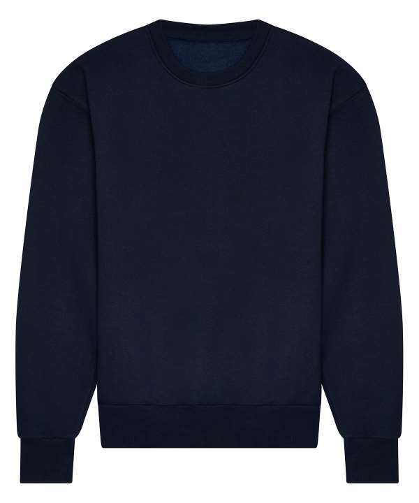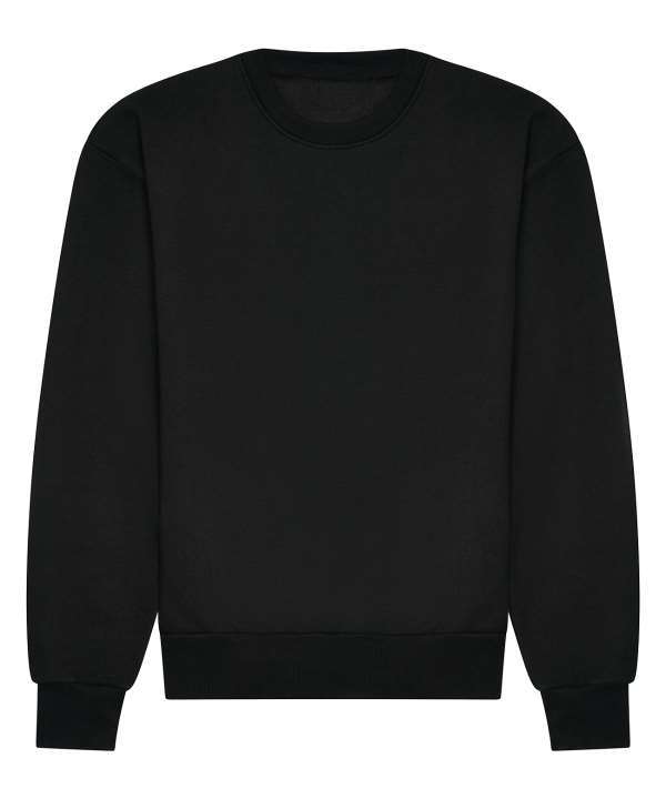 Cotton faced fabric, Drop shoulder style, Ribbed collar, cuffs and hem, Brushed back fleece, Oversized fit, Tear out label, Garment measurments have a tolerance of +/- 2cm, Sizes 4XL and 5XL only available in Deep Black