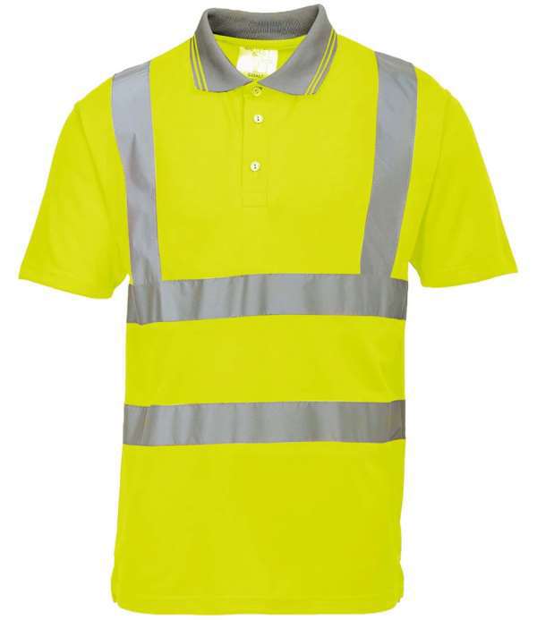 Conforms to EN ISO 20471: 2013 + A1: 2016 class 2, ANSI/ISEA 107 class 2.2, UPF 35+, Grey collar with yellow tipping, Two reflective bands around the body and one over each shoulder, Side vents, Twin needle stitching
