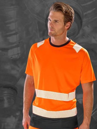 100% recycled polyester, Conforms to EN ISO 20471: 2013 + A1: 2016 class 2., Quick drying and breathable., Taped neck., Two printed reflective bands around the body and one on each shoulder., RIS-3279-TOM class 2 (orange only).