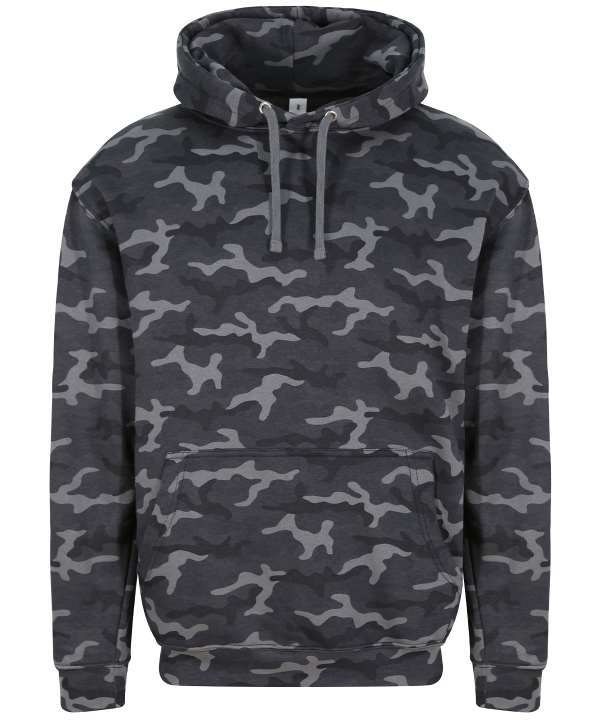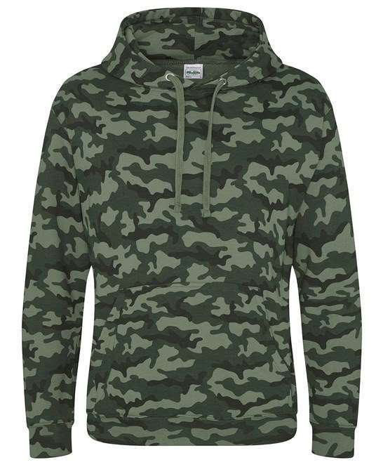 Fabric: 80% ringspun cotton, 20% polyester, Weight: 280gsm, Classic all over camouflage print design, Twin needle stitching detail, Double fabric hood, Flat lace drawcords, Kangaroo pouch pocket with small opening for ear phone cord feed, Hidden ear phone loops, Soft cotton faced fabric creates ideal printing surface, Worldwide Responsible Accredited Production (WRAP) certified production, Simple tear out label makes it perfect for rebranding
