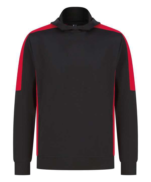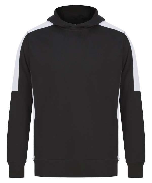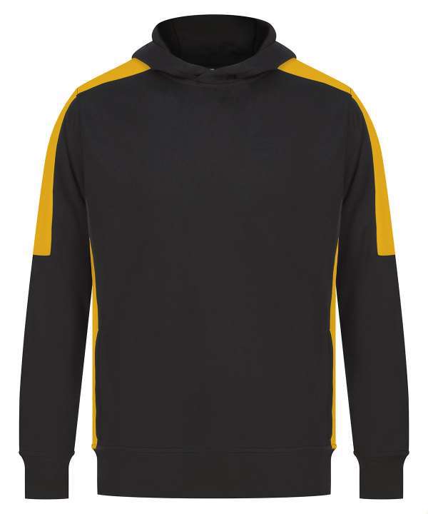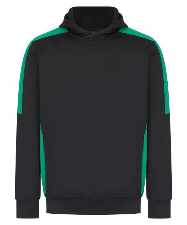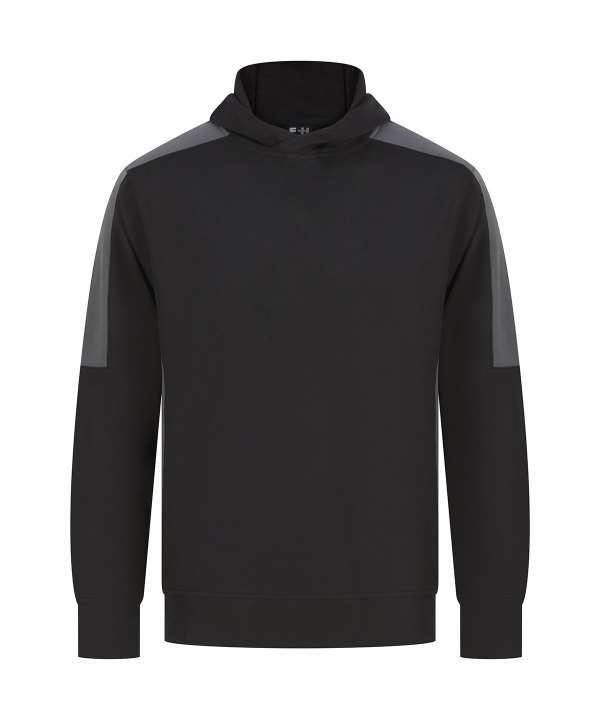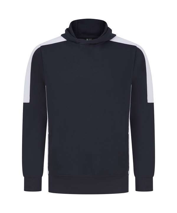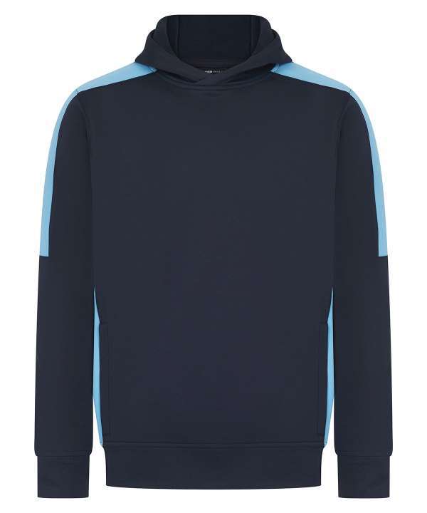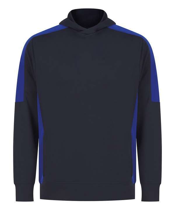 Brushed back fleece, Three panel hood, Contrast shoulder, upperarm and side panels (black and navy are self colour), Drop shoulder style, Crossover neck detail