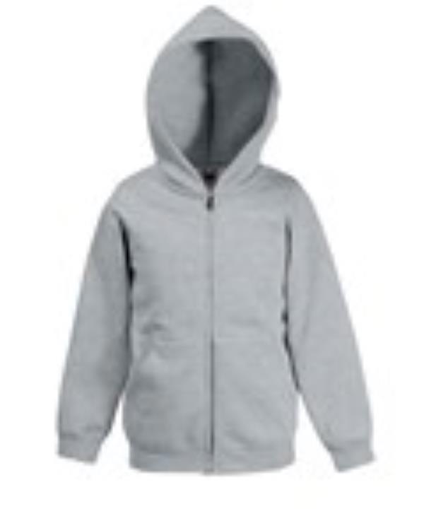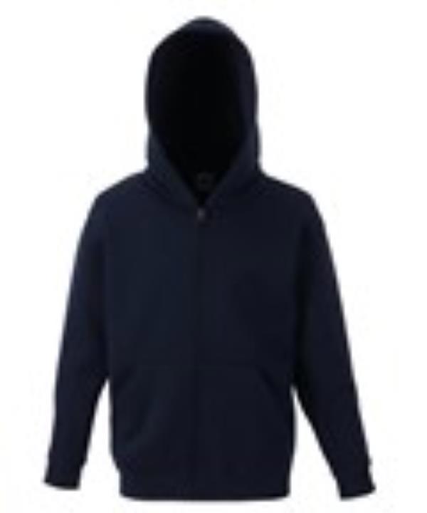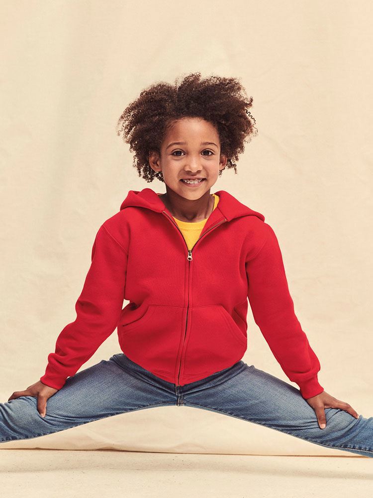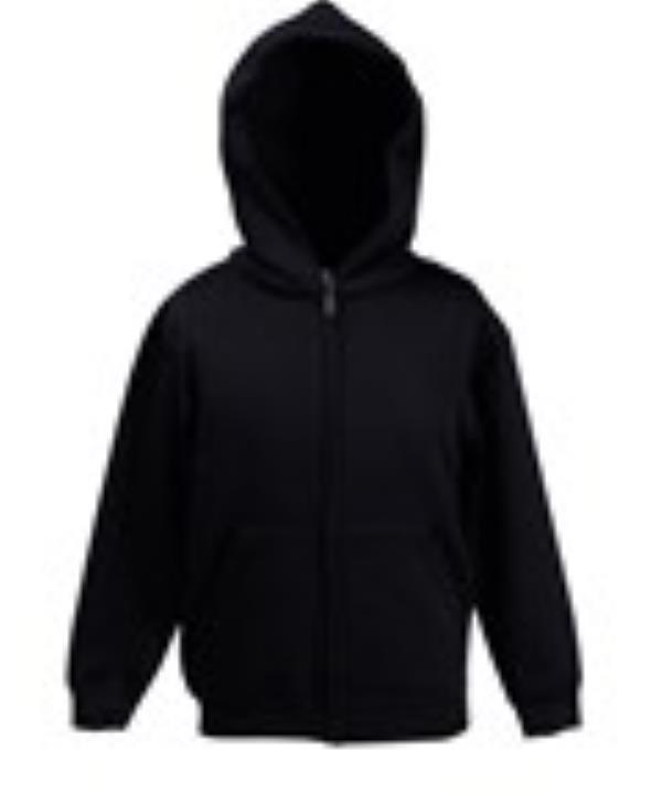 Double fabric hood withiut drawcord, in line with European childrenswear legislation,Single jersey back neck tape,Two front pouch pockets,Covered zip for enhanced printability,Waist and cuff in cotton/elastane rib