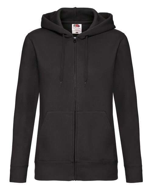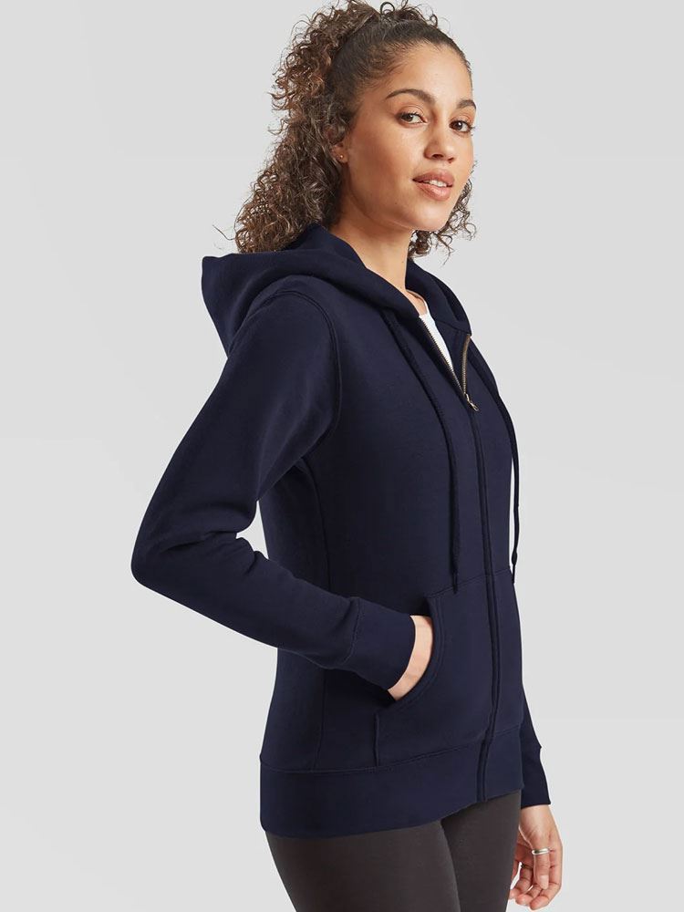Ideal for work, tourism, event, leisure or casualwear, the women's Premium hooded sweat jacket is available in a range of colours and features a double fabric hood and covered metal zip for enhanced printability