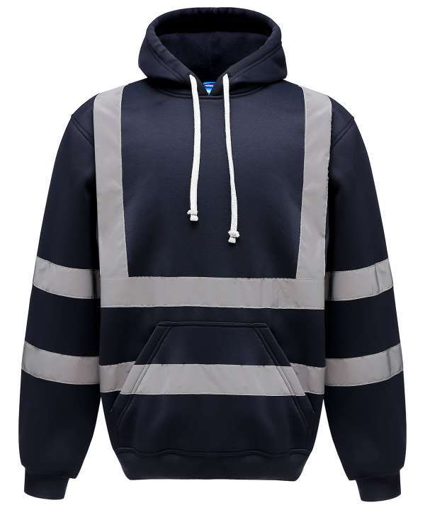 Anti-pill single jersey knitted soft feel fabric, Conforms to EN ISO 20471: 2013 + A1: 2016 class 3., Hi-Vis Yellow, Orange, Hi-Vis Yellow/Navy and Orange/Navy conform to EN ISO20471 Class 3, Orange & Orange/Navy are also RIS-3279-TOM Railway use certified, Black & Navy provide enhanced identification in the dark environemnt, Two 5cm width reflective tapes around the body and arms, and one over each shoulder, Front kangaroo pocket