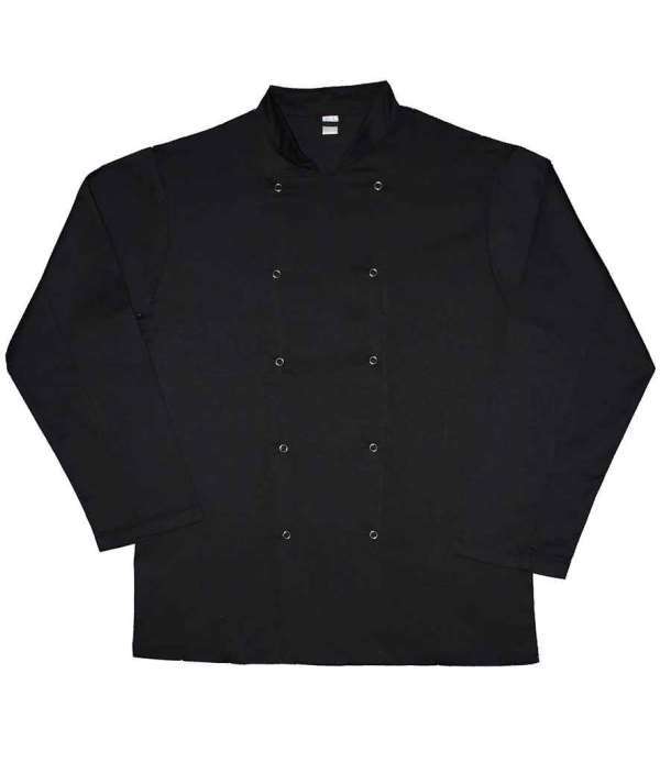 Unisex styling, Stainless steel studs, Mandarin collar stand with topstitching, Open cuffs