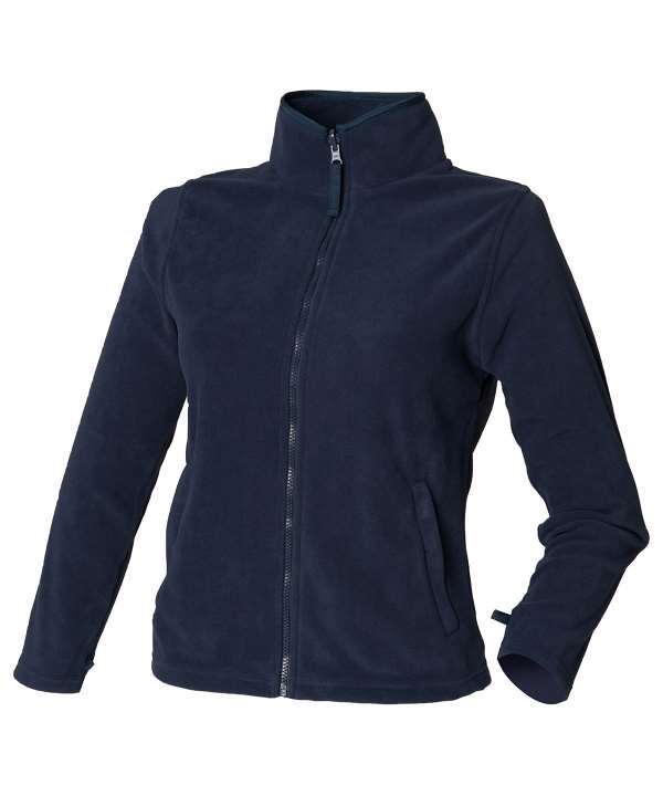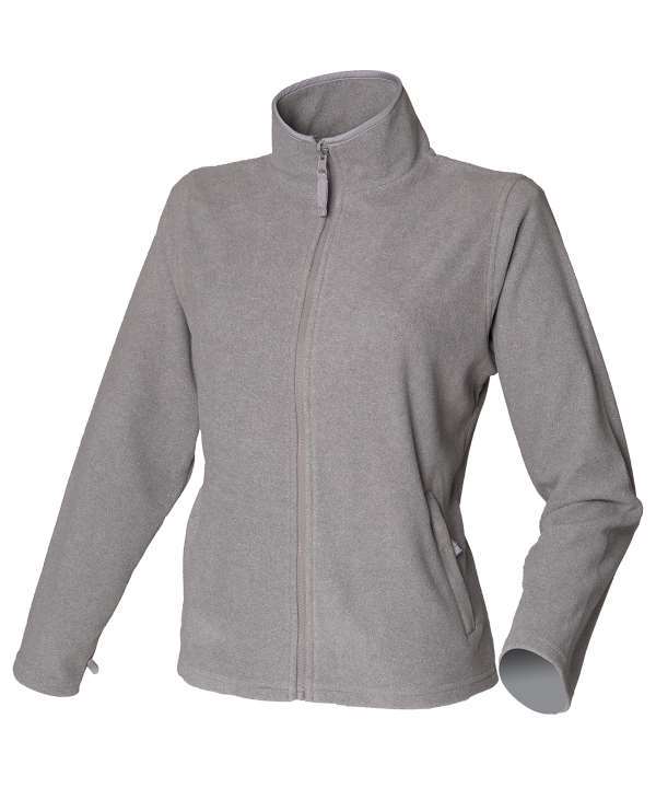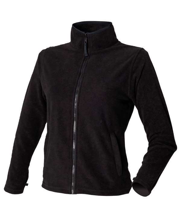 Ladies fit with shaped seams and shorter cut,Polyester micro fleece with anti pill finish,Smooth surface for ease of decoration,Matching binding at collar and cuffs,Front zipped pockets, gently curved hem