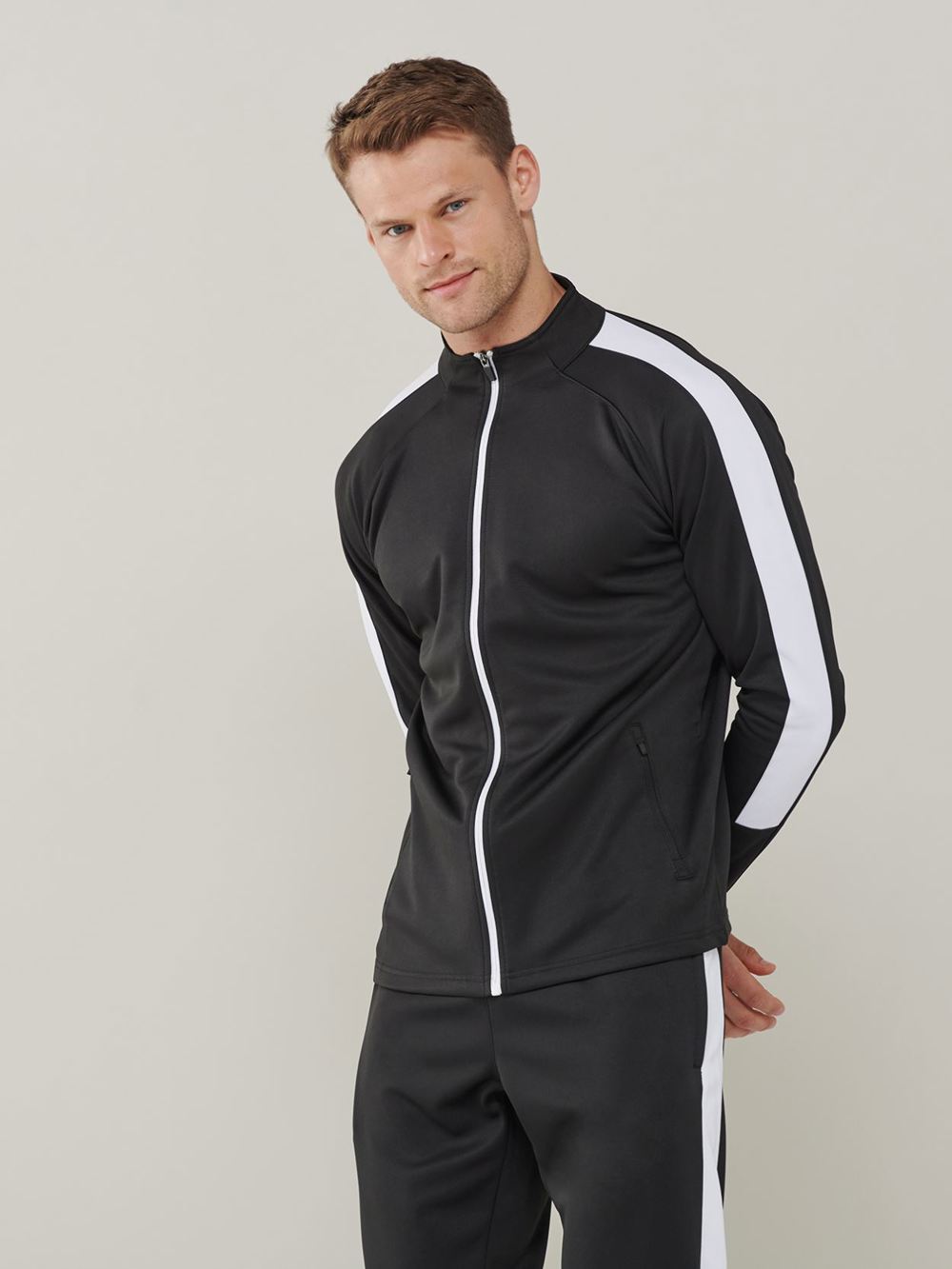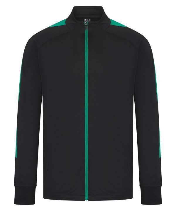 Funnel neck, Contrast outer sleeve panels, Semi-automatic lock zip sliders on all zips, Full length contrast zip, Two front zip pockets, Matching bottoms: LV881