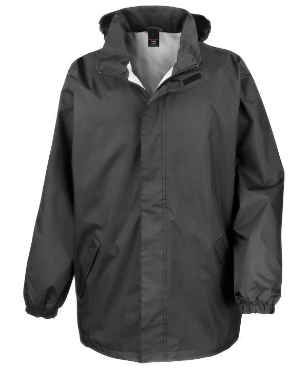Jersey lined body and polyester lined sleeves., Waterproof with taped seams., Tear release storm flap., Inner pockets., Two front pockets., Elasticated cuffs., Windproof, Concealed adjustable hood., 190T polyester pongee StormDri 2000 PU coating.