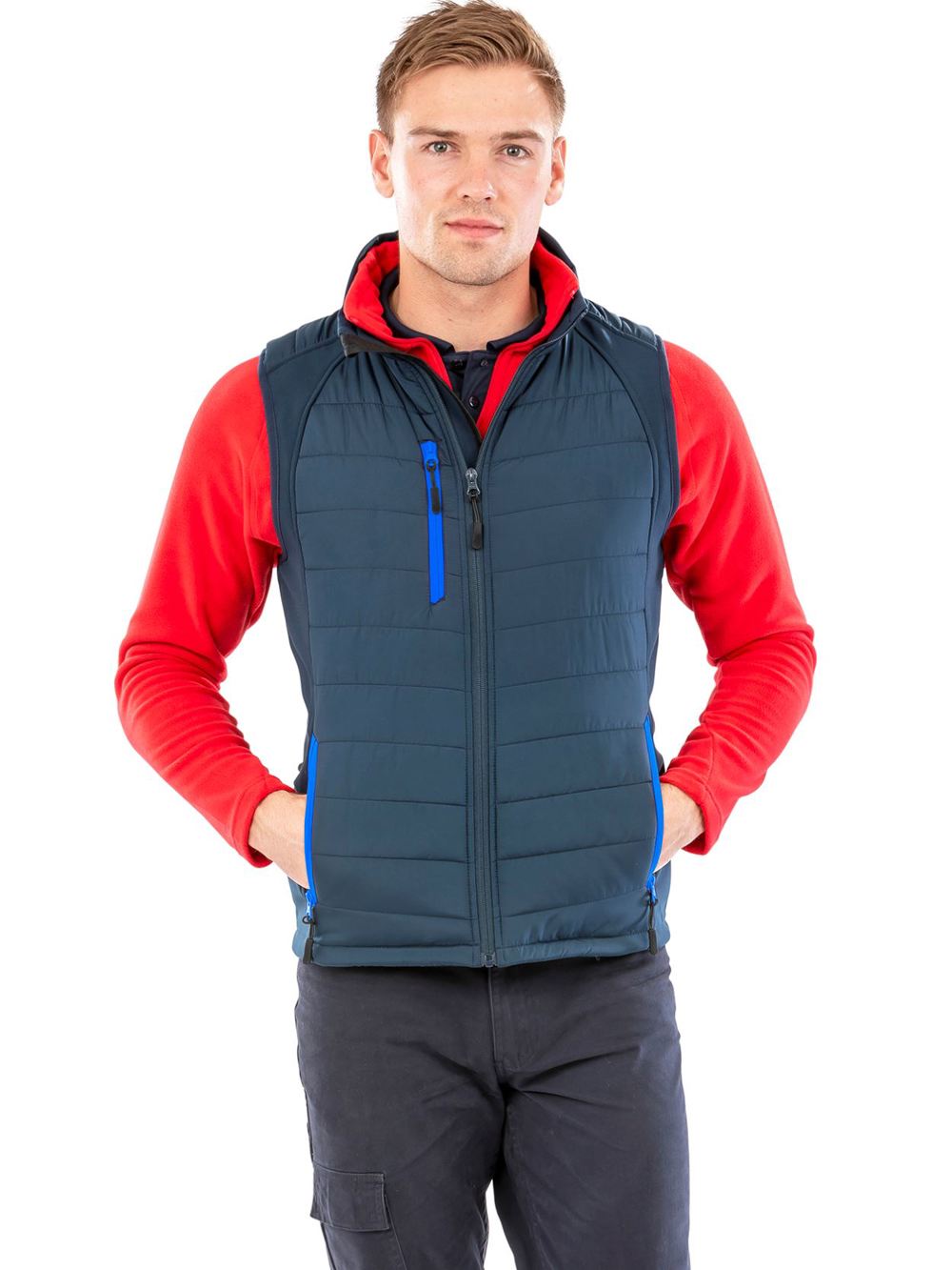 Contrast colour pocket zips YKK full front zip with chin guard Stand-up padded collar and padded body Soft bound cuffs Black colour zip pulls and hang tags Showerproof, windproof and breathable TOPGREEN environmental-friendly softshell polyester printable shoulder panels REPREVE performance recycled padding using environmental-friendly materials Made from recycled plastic bottles and post-industrial waste A sustainable equivalent to conventional yarns *Filling: 100% REPREVE recycled polyester To fit chest: 35 38 41 44 47 50 53