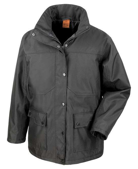 - Front 2-way zip fastening. Stud closing stormflap. Concealed fold-away zip-off adjustable hood. Adjustable shockcord hem. Deep front flat stitch pockets with stud closers, inside chest pocket with internal cable access, external chest pocket. Underarm me