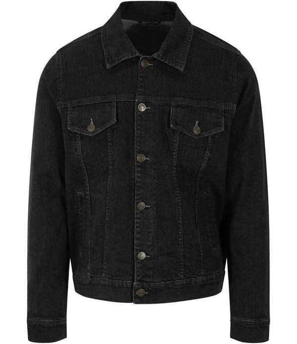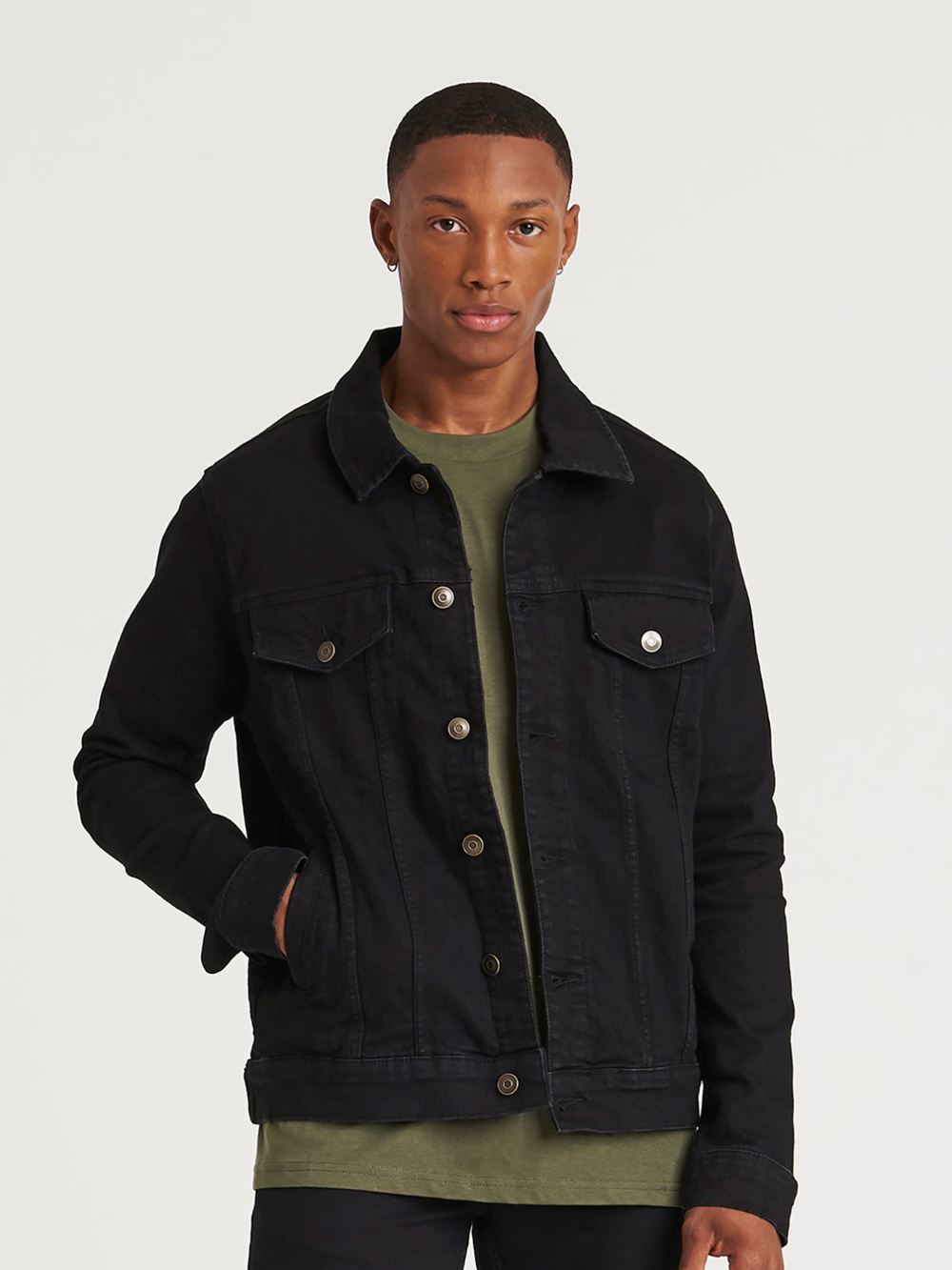 Stretch denim., Classic denim jacket panelling., Fashion fit., Hanging loop., Shank button closure., Single button cuffs., Two chest pockets with flap closure., Contrast twin needle stitching., Two front pockets.