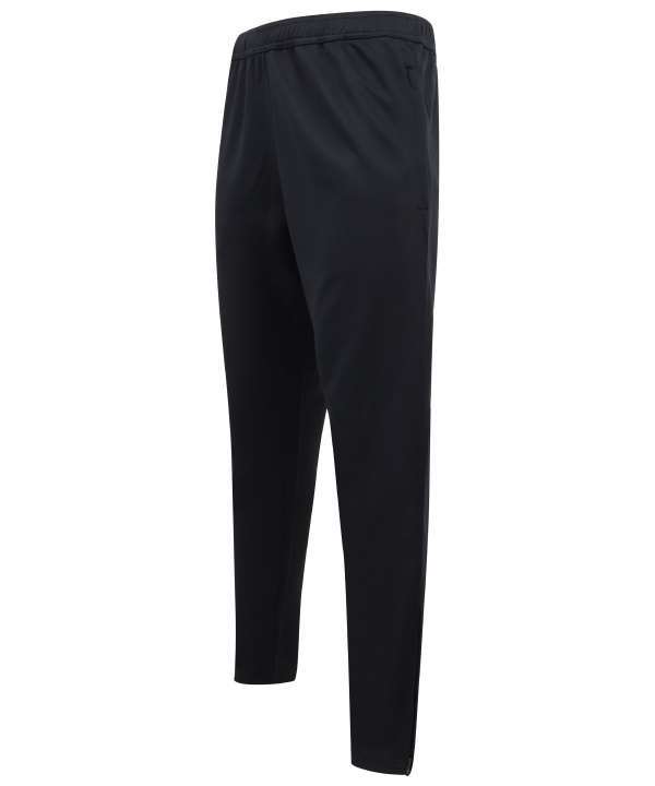 Slim leg, Two side zip pockets, Ankle zips with zip guard and semi-automatic lock zip sliders, Elasticated waistband with inner drawcord, Tear out label