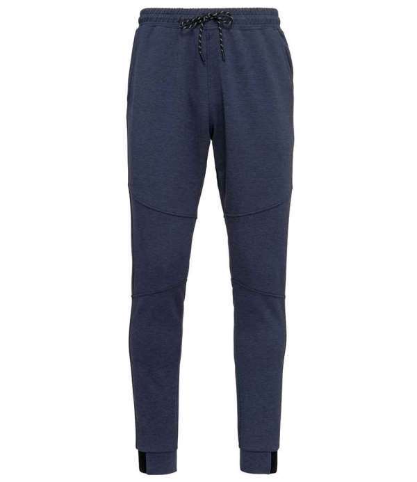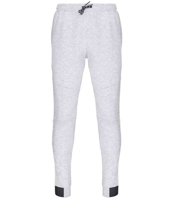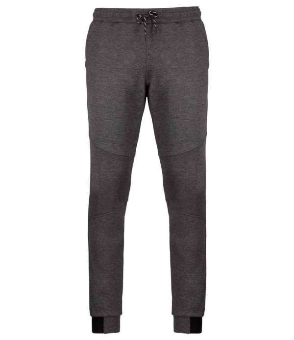 Slim fit, Two side jersey lined pockets, Knee patches, Elasticated waistband with two tone drawcord and plastic tips, Rear zip pocket, Elasticated leg ends