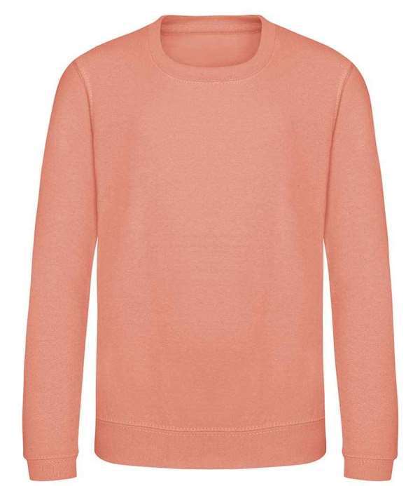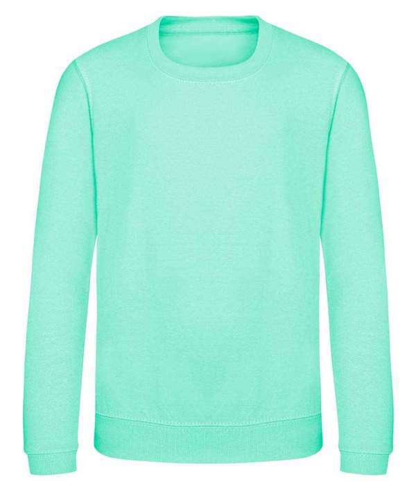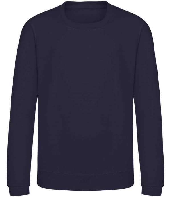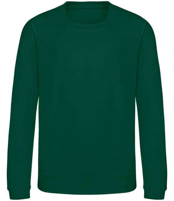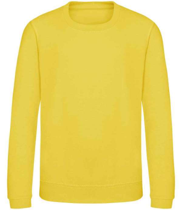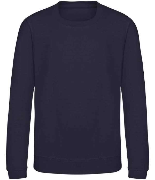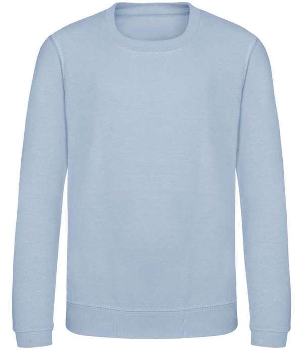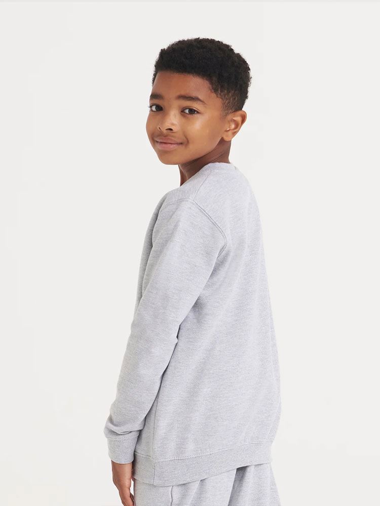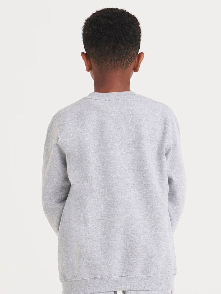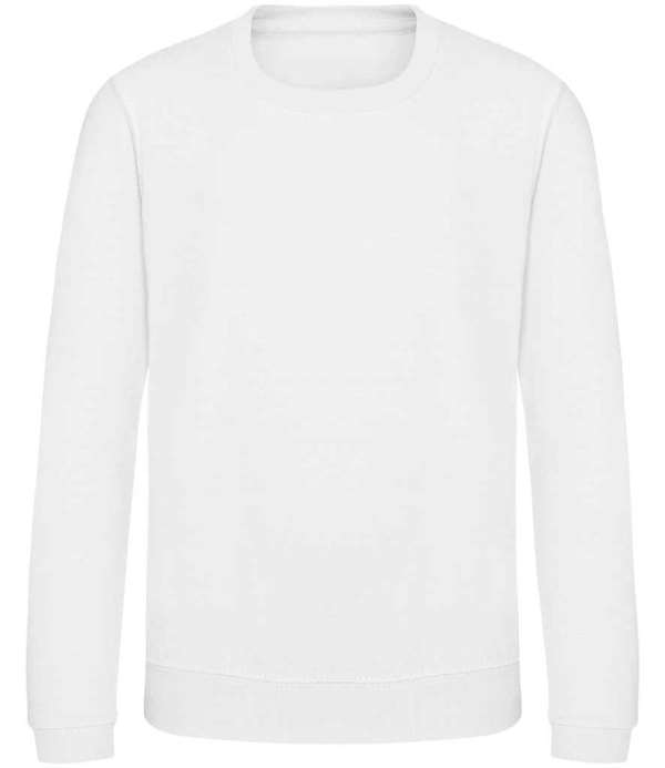 Kids Version of the JH030 Adults Sweatshirt, Crew neck sweat, Set in sleeves, Stylish fit, Simple tear out label makes it perfect for rebranding, Twin needle stitching detail, Ribbed collar, cuff and hem, Name label sewn into side seam, Taped neck, Worldwide Responsible Accredited Production (WRAP) certified production, Garment measurements have a tolerance of +/- 2cm