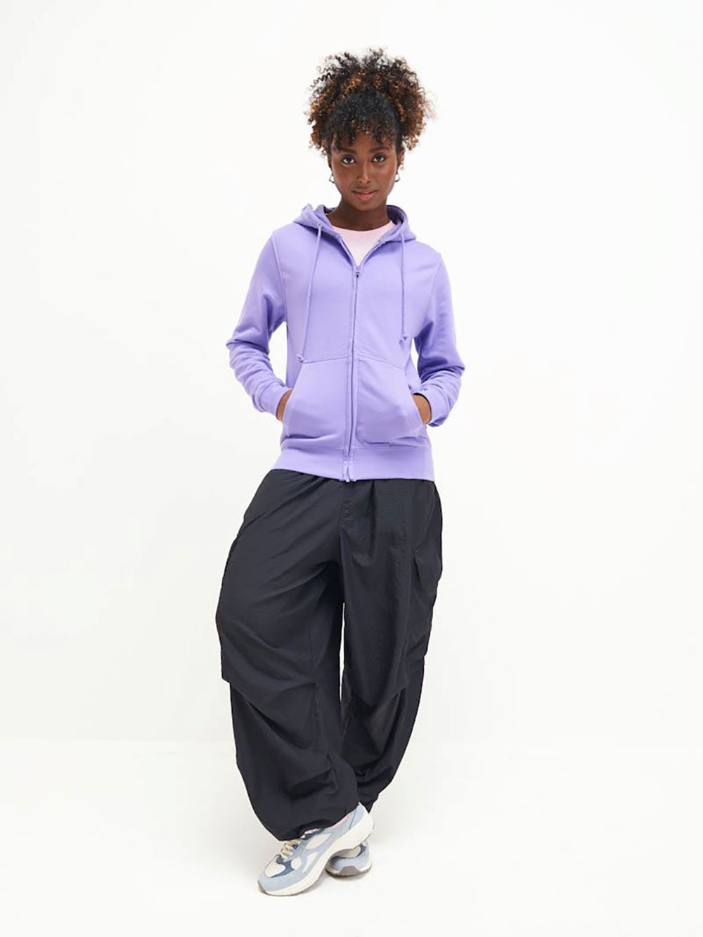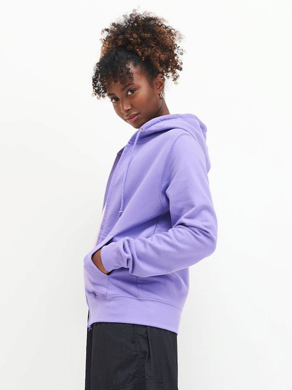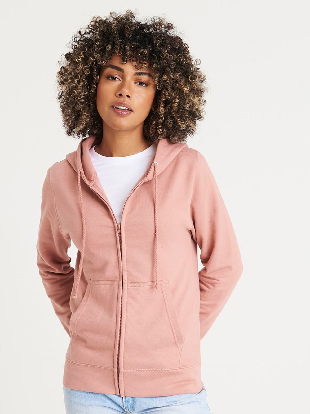 Soft cotton faced fabric. Brushed back fleece, Double fabric hood with self colour drawcord, Full length covered plastic YKK zip. Front pouch pockets., Relaxed fit. Drop shoulder style, Garment measurements have a tolerance of +/- 2cm