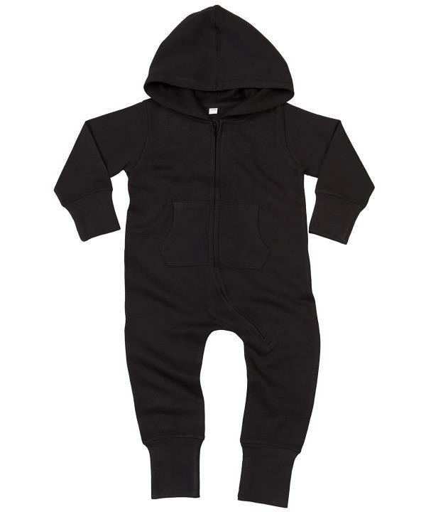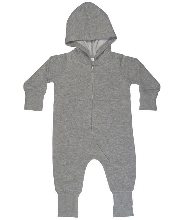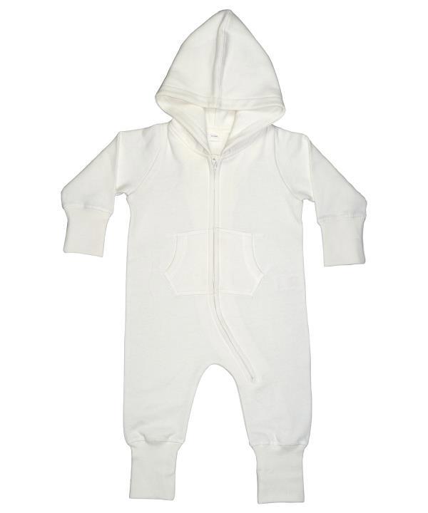 Organic or in-conversion to organic cotton., Single layer hood., Brushed back fleece., Zip front with chin guard., Seam free back., Two front pockets., Tear out label., Extra long cuffed sleeves and leg openings.