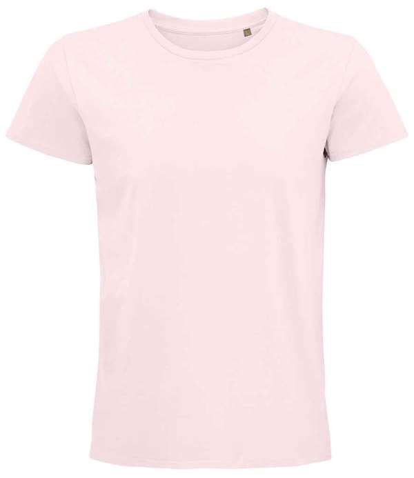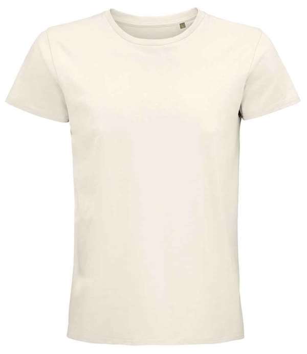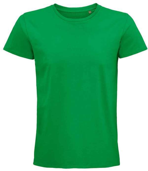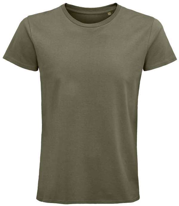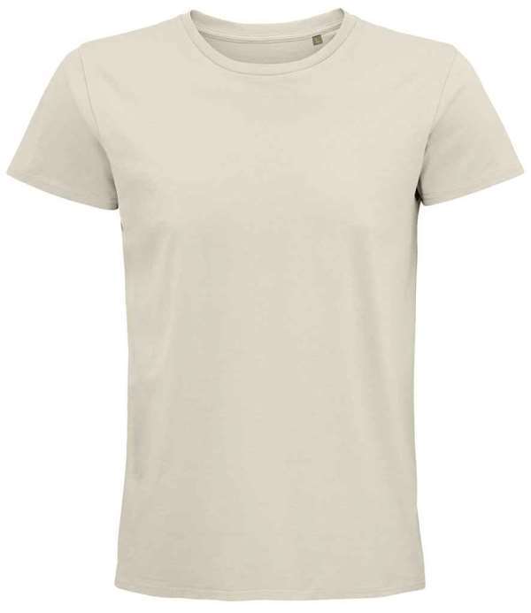 Twin needle stitching, 1x1 ribbed collar. Taped neck., Tubular body, Unbranded size label at neckline
