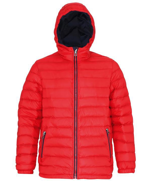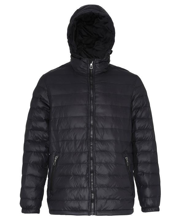 Warm and versatile padded jacket. Water resistant. Wind resistant. Warm polyfill quilted lining. Fully lined hood with adjusters. Full zip with zip guard. Two interior pockets. Two zippered front pockets. Elasticated cuffs. Decoration flexible concealed i
