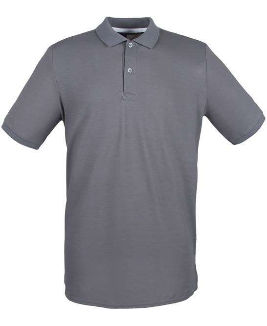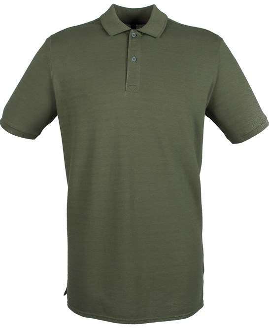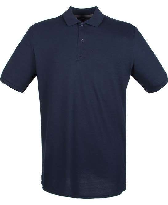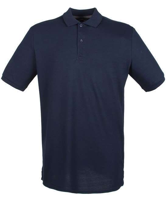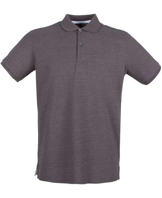 Modern fit& fitted sleeve and cuff;Henbury cut out back neck brand label, 100% Cotton, micro-fine piqué. Ash: 98% Cotton, 2% Polyester. Charcoal: 48% Cotton, 52% Polyester. Heather Navy: 48% Cotton, 52% Polyester, 180gsm