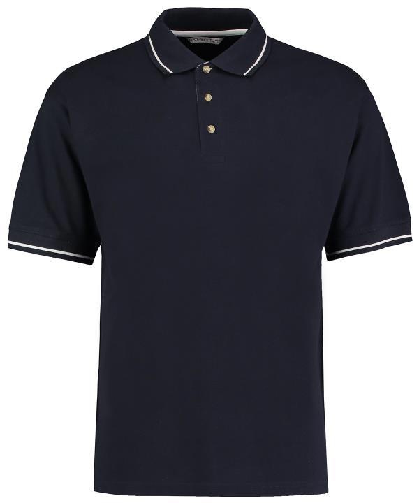 1x1 rib flat knit collar and cuff with contrast stripe, Contrast inner placket, Taped back neck and taped side vents, Generous fit, Horn effect buttons, Spare button, Three button slanted top placket, Classic fit, Worldwide Responsible Accredited Production (WRAP) certified production