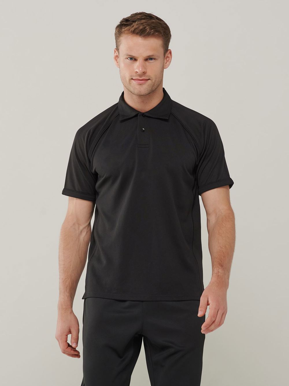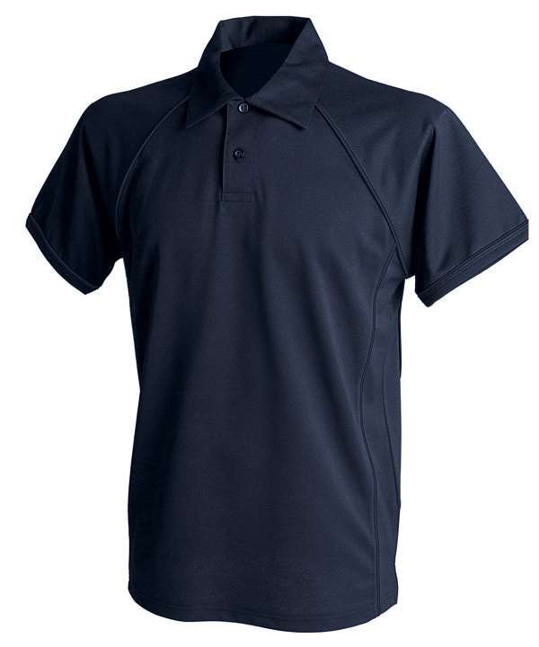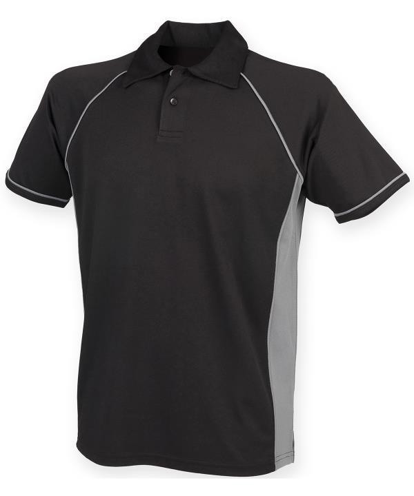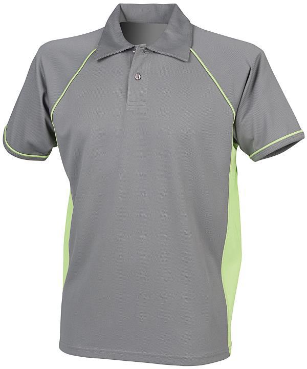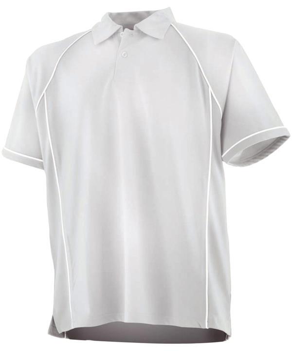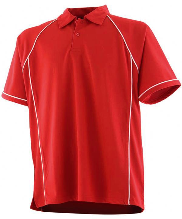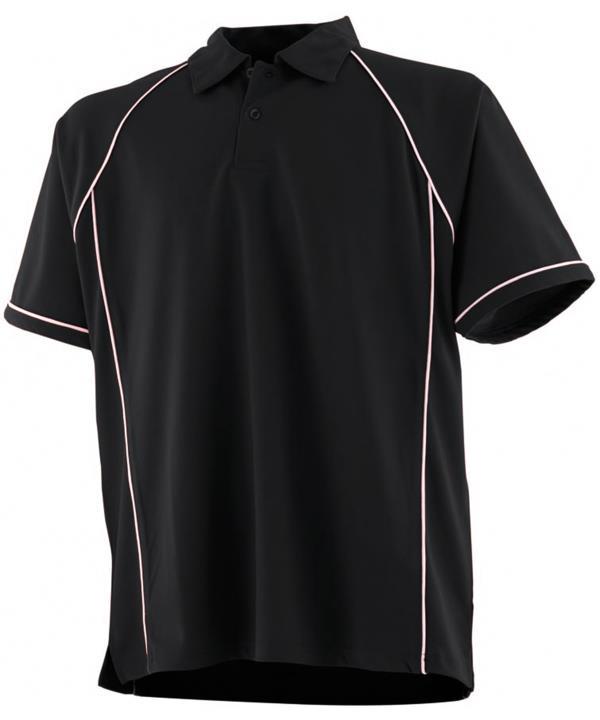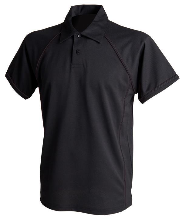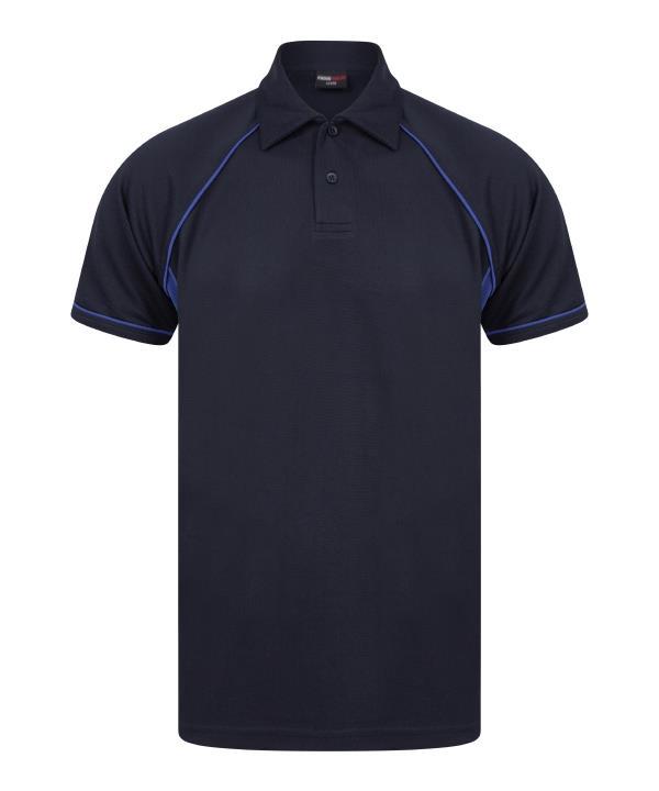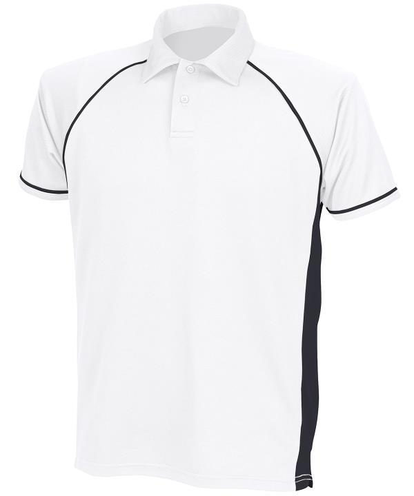 Coolplus specially modified polyester fibres enable rapid absorption of sweat from skin surface,Contrast white piping along raglan seams and down front and back,Two button placket with matching buttons,Self fabric collar,Raglan sleeves