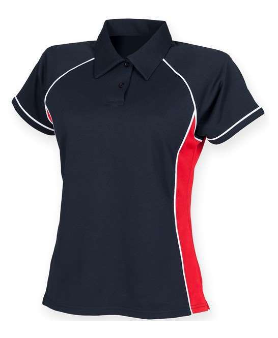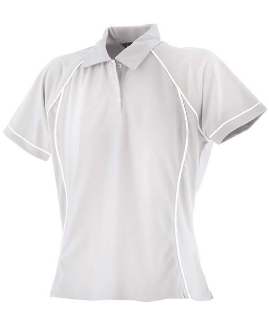 Coolplus specially modified polyester fibres enable rapid absorption of sweat from skin surface,Contrast white piping along raglan seams and down front and back,Two button placket,Self fabric collar,Raglan sleeves
