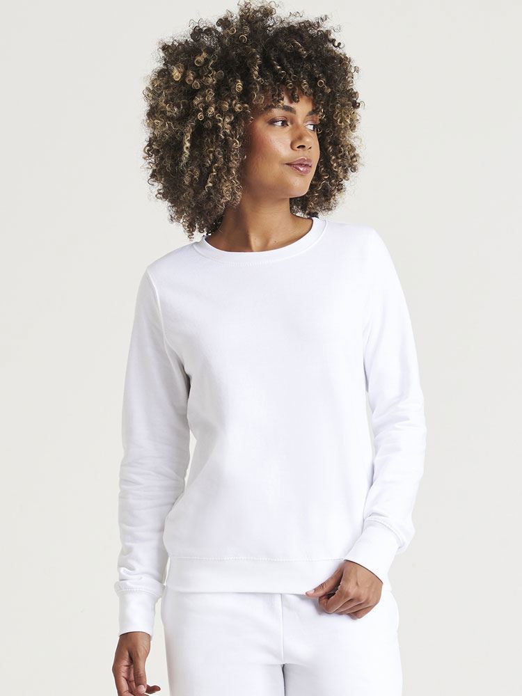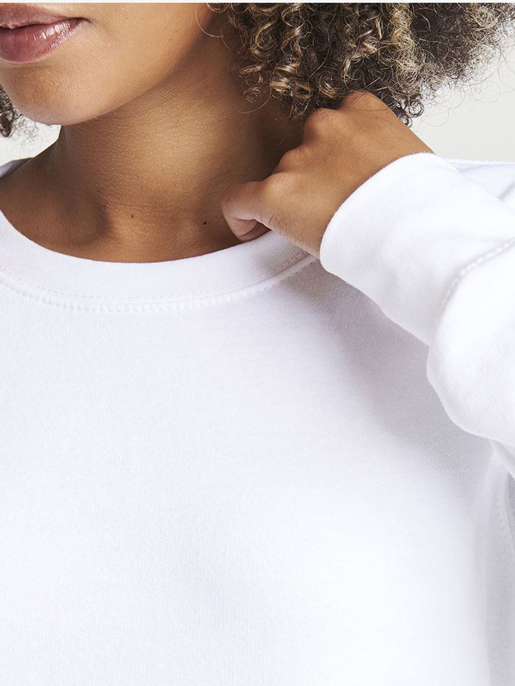 Women's classic fit, Crew neckline, Twin needle stitching, Brushed inner fleece, Ribbed cuffs and hem, Soft cotton faced fabric creates ideal printing surface, Simple tear out label makes it perfect for rebranding, Worldwide Responsible Accredited Production (WRAP) certified production, Garment measurements have a tolerance of +/- 2cm