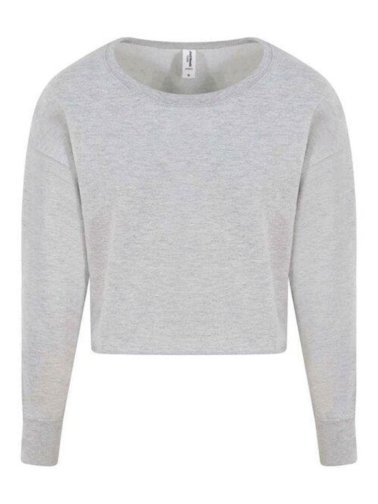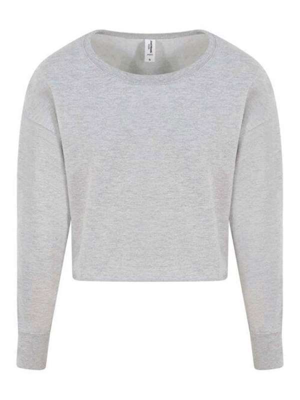 Women's relaxed fit, Crew neckline, Cropped cut with drop shoulder design, Brushed inner fleece, Ribbed cuffs and hem, Soft cotton faced fabric creates ideal printing surface, Simple tear out label makes it perfect for rebranding, *Heather Grey: 75% ringspun cotton, 25% polyester