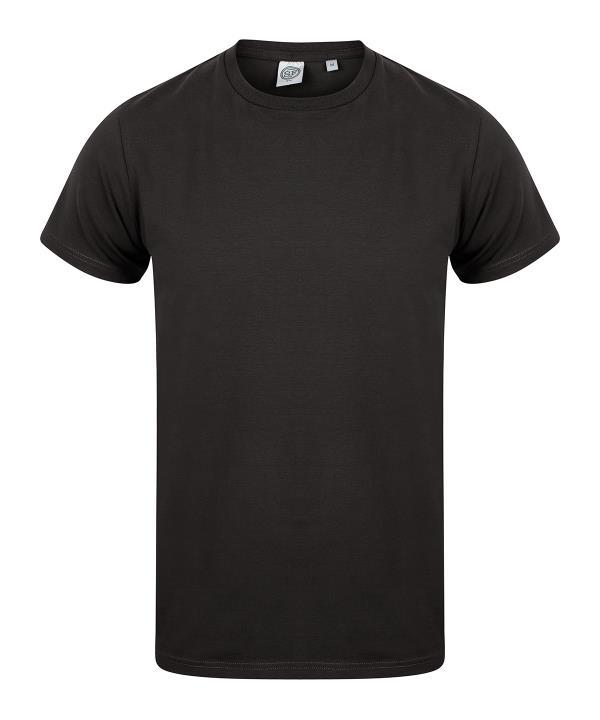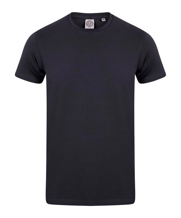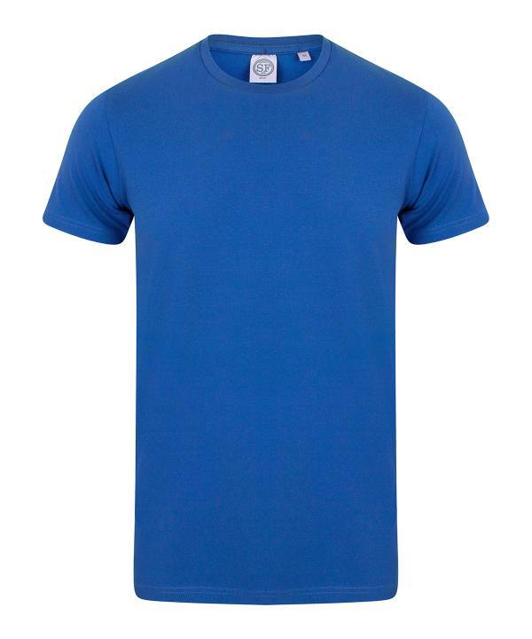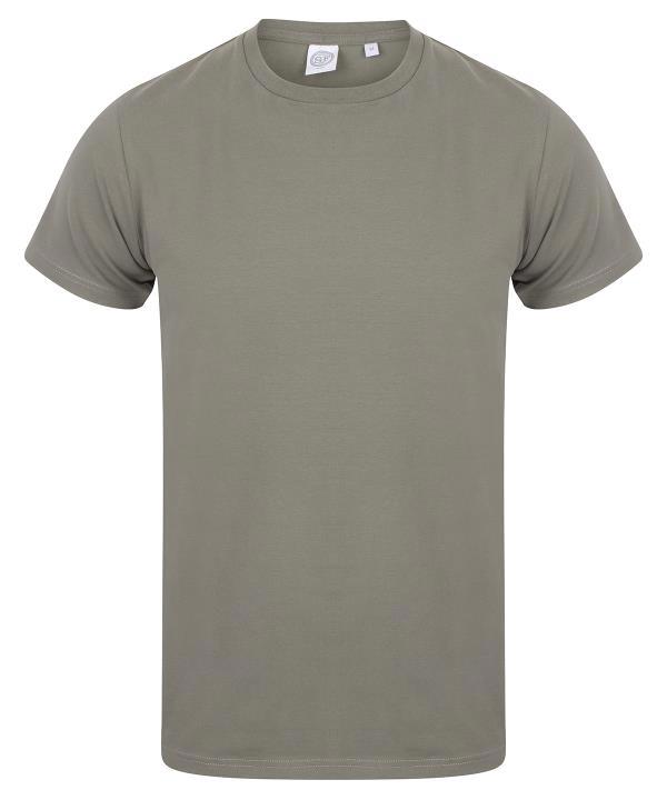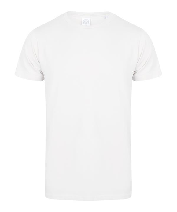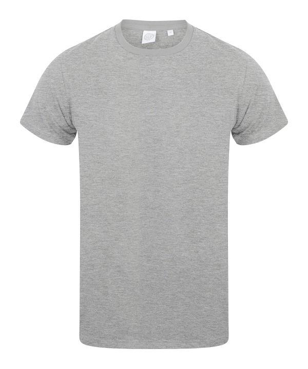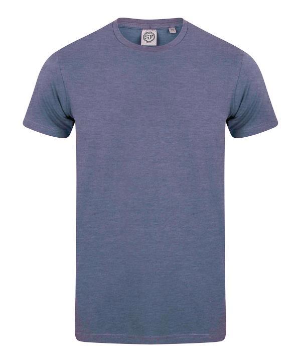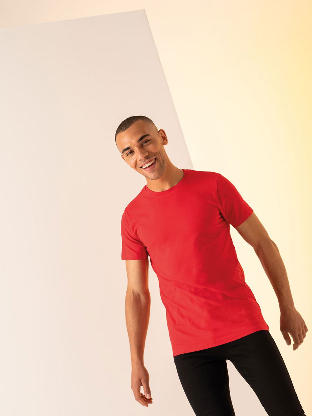 Crew Neck T-shirt, Longer, modern cut, Fashionable Cut, Enzyme wash for unique soft hand feel, Ribbed crew-neck with back-neck tape, Tear-Out SF(Skinnifit) label