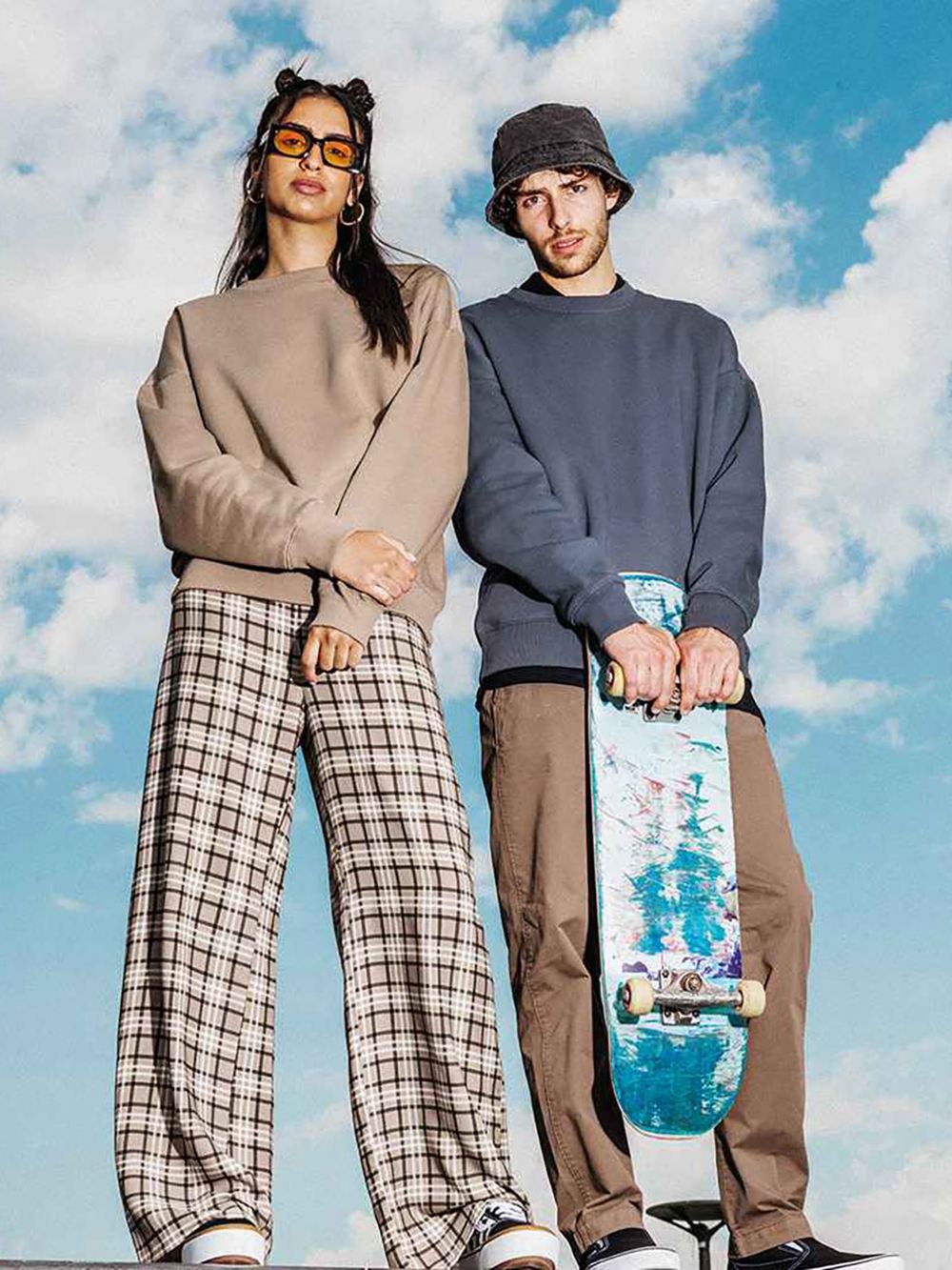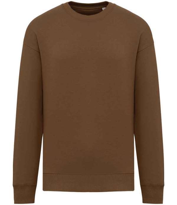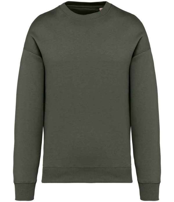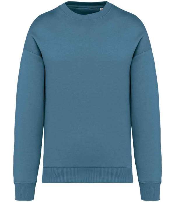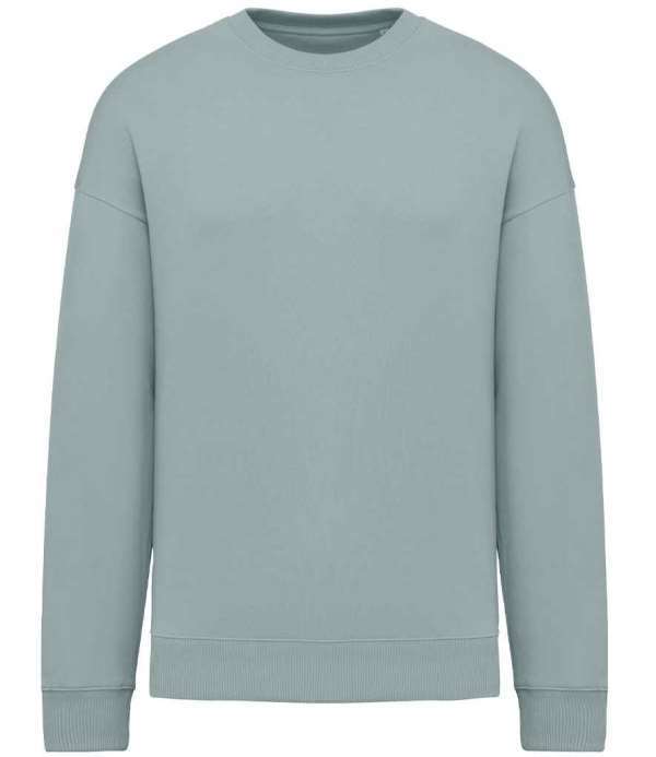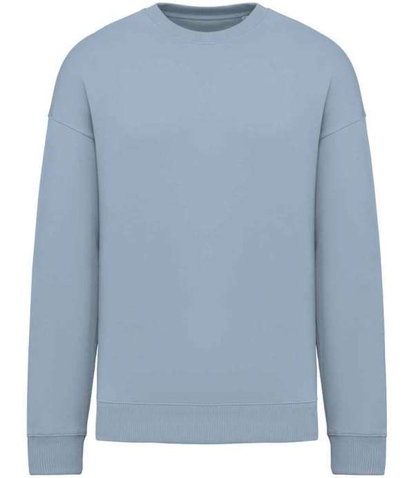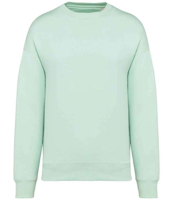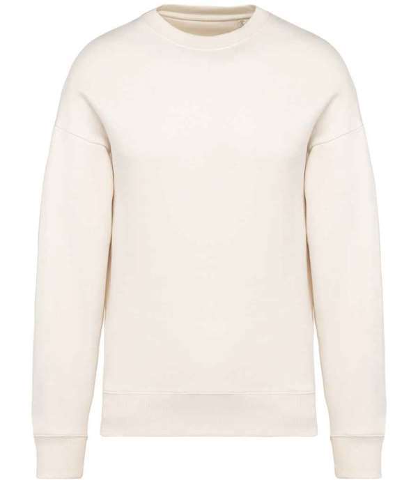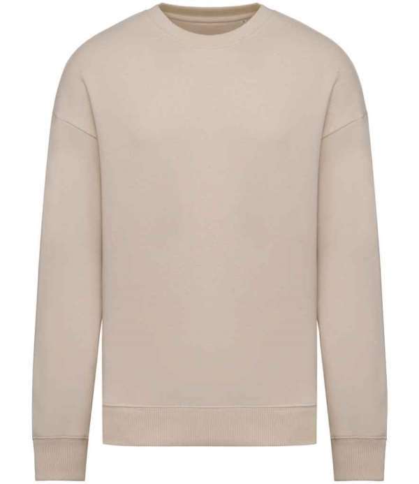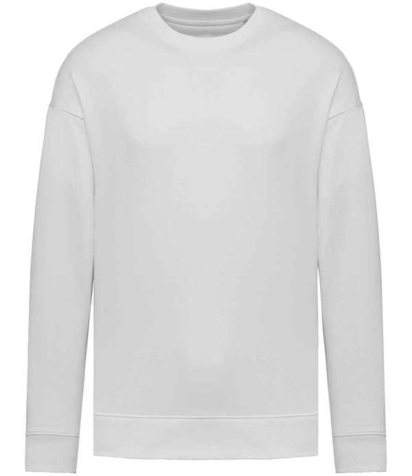 85% organic ringspun combed cotton/15% recycled polyester, Brushed back fleece, 300 gsm, Drop shoulder style, Oversized fit, 2x1 ribbed collar, cuffs and hem, Half moon back yoke, Tag free