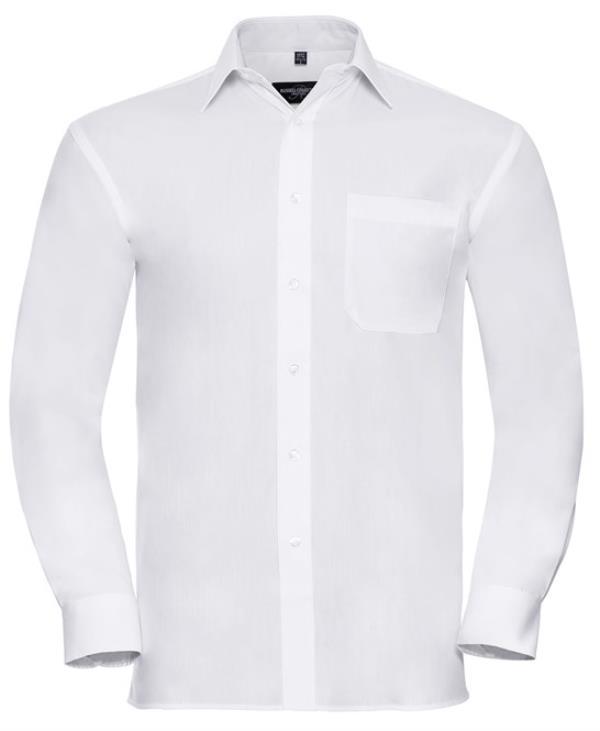 Classic cut and classic shirt design,Classic style boned collar,Rounded 2 button adjustable cuff plus single button on cuff gauntlet,Back yoke with 2 side pleats,Pocket over left chest mitred edge pocket